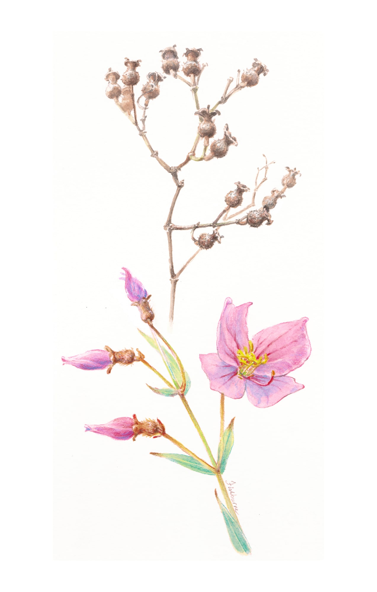Found from North Carolina to Texas, Smooth Meadow Beauty, Rhexia alifanus, is a native perennial blooming from May through September. Flowers are pink to lavender, with four petals and eight anthers. Seed capsules are distinctly vase-shaped, studded with very small spines.