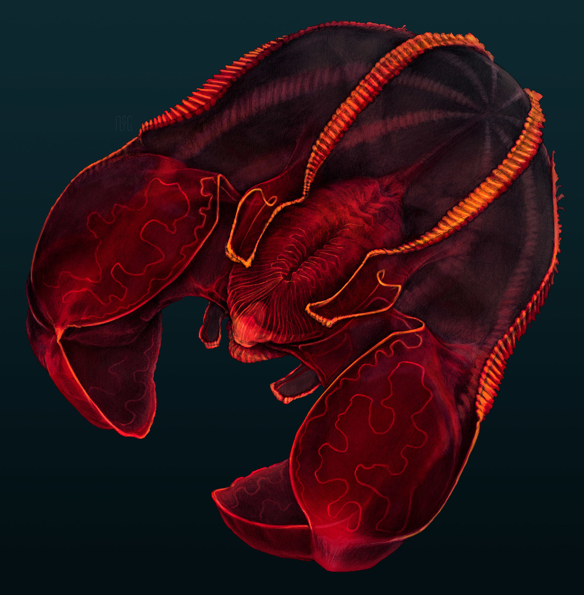 Flandrau Science Center of Tucson commissioned 6 illustrations of deep-sea animals for their permanent ocean exhibit. The “Midnight Zone” (Bathypelagic) extends 3,300–13,000 ft. below the surface, out of sunlight’s reach. I chose species for their variety of body plans, colors, and adaptations.