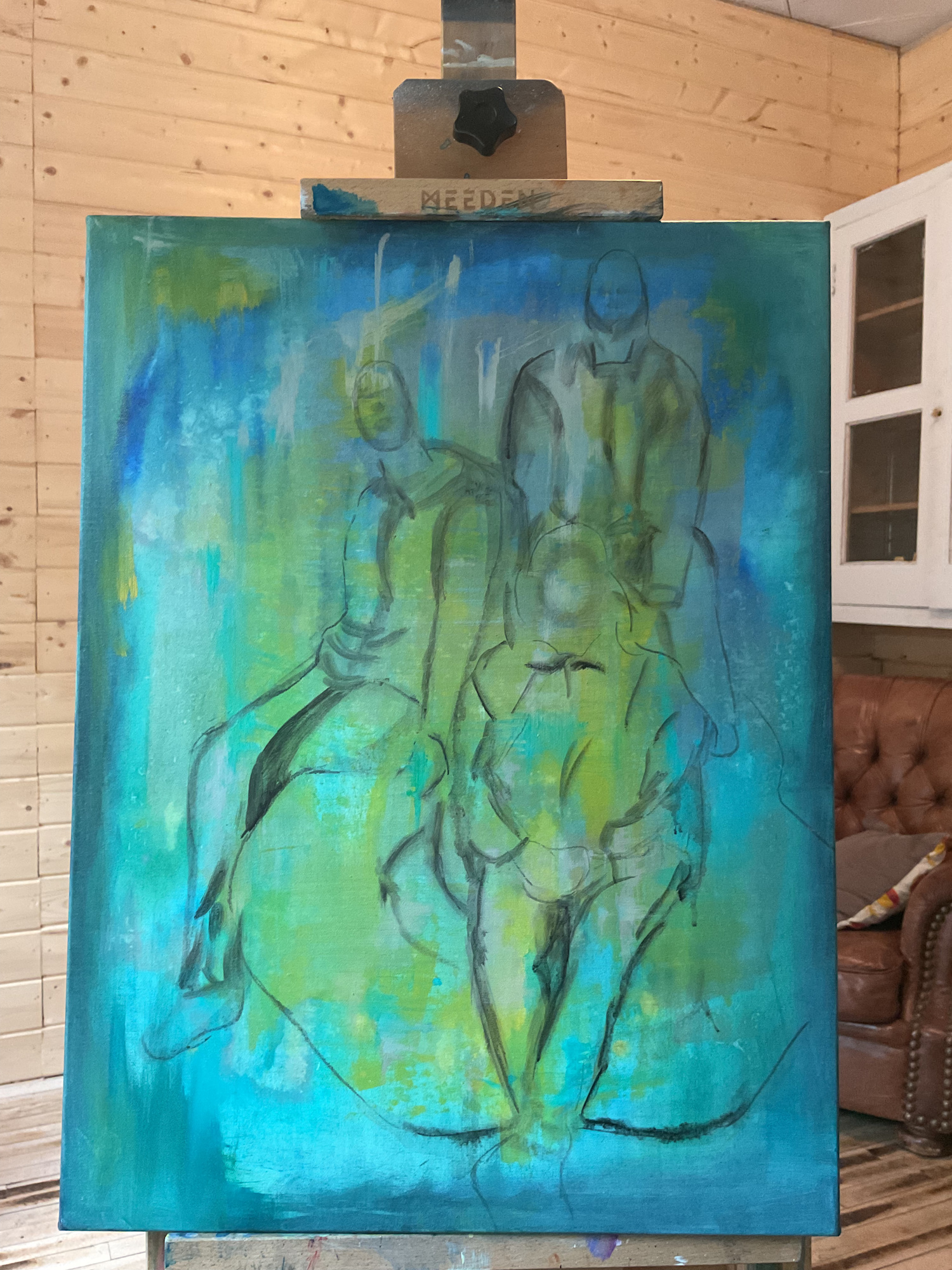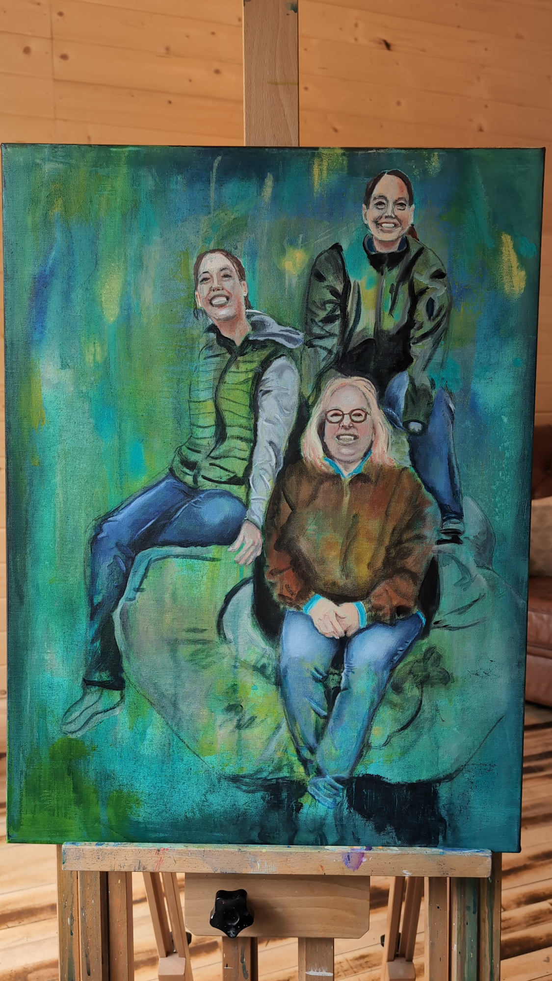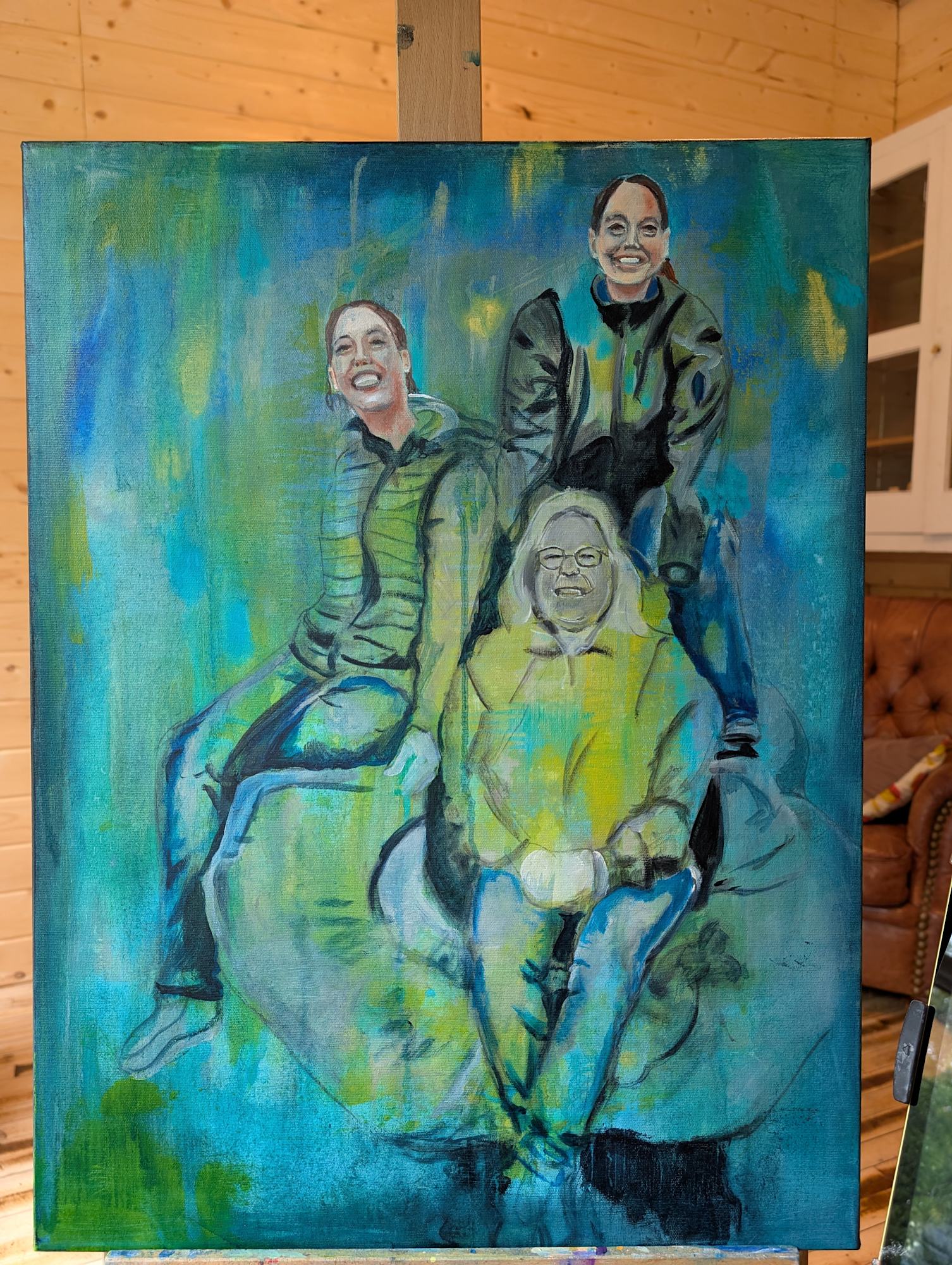 This is a commission after a photo. I started in mixed media watercolour, acrylic and pens. The last layers are in oil.