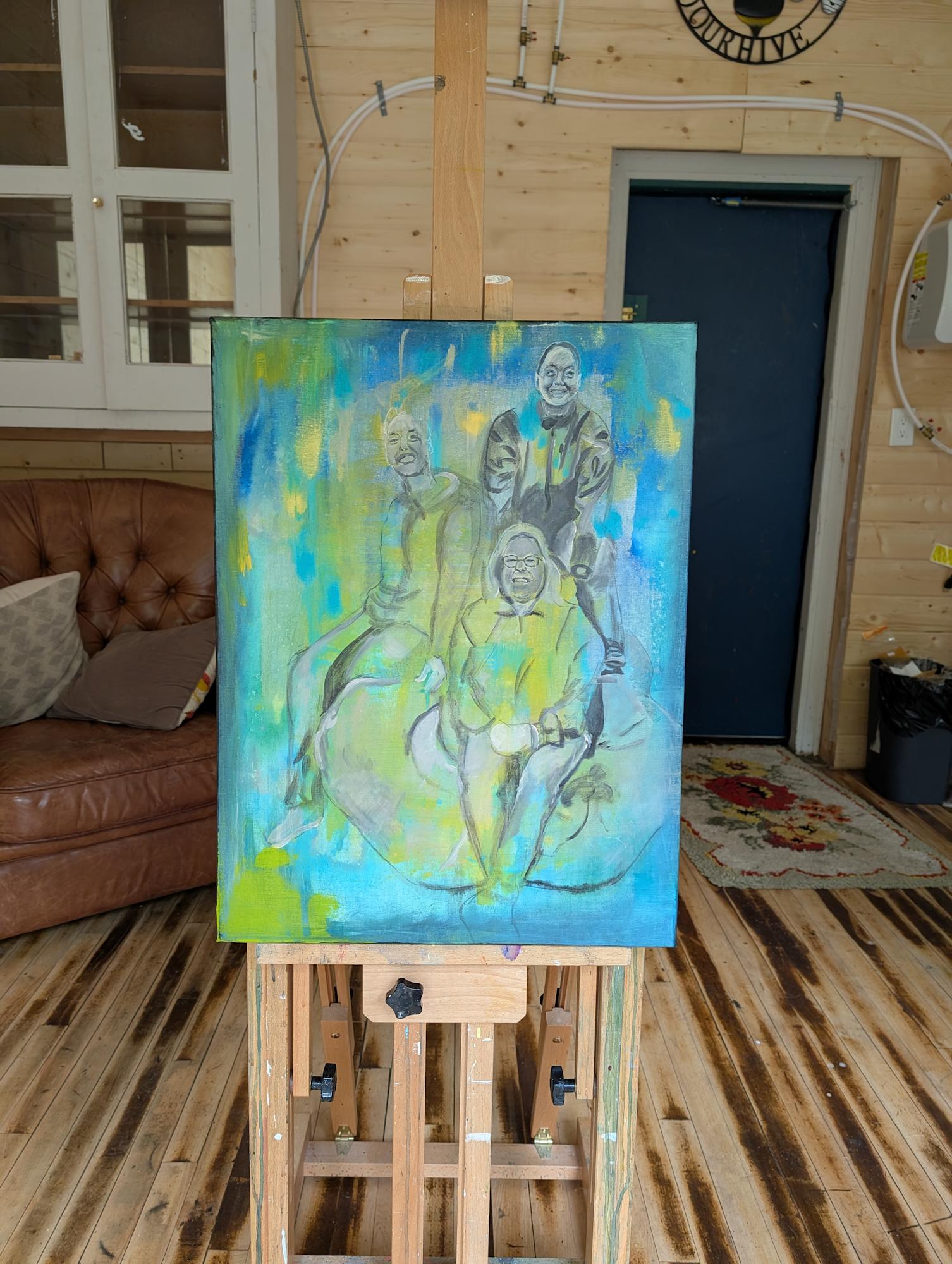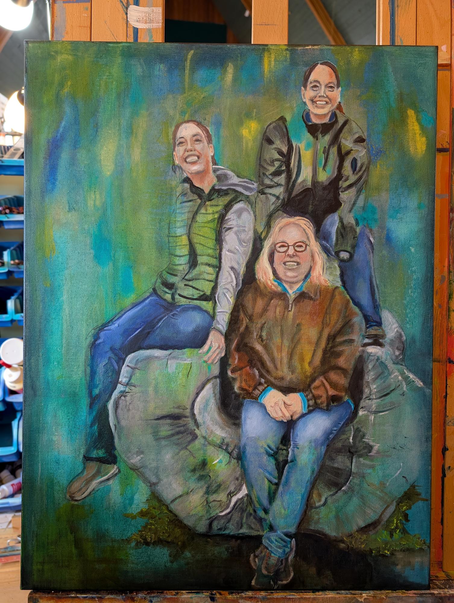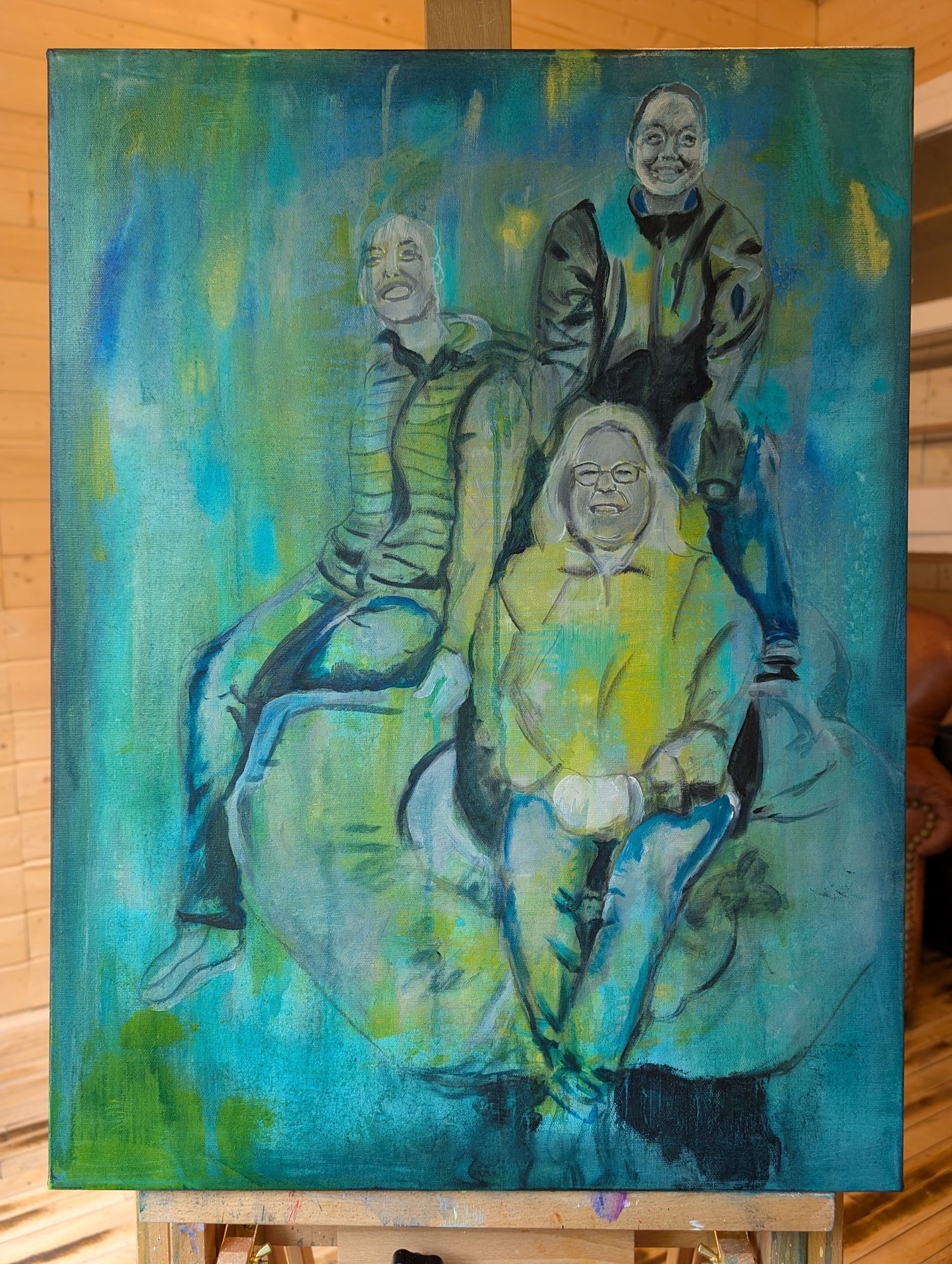This is a commission after a photo. I started in mixed media watercolour, acrylic and pens. The last layers are in oil.
