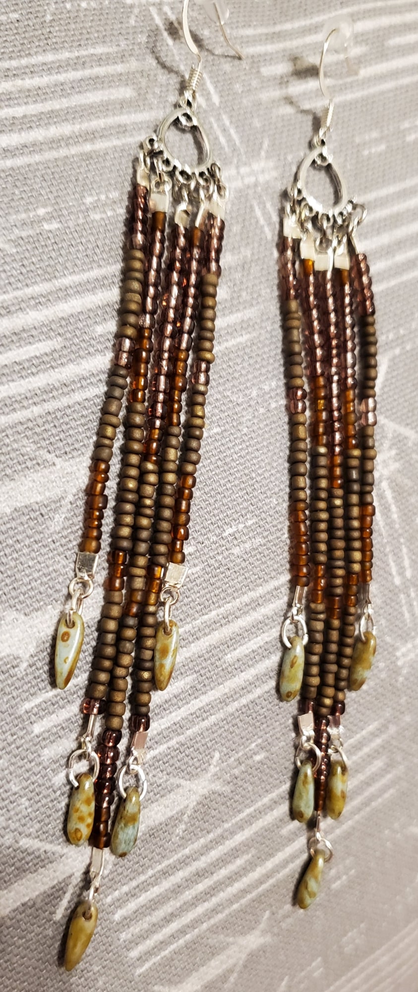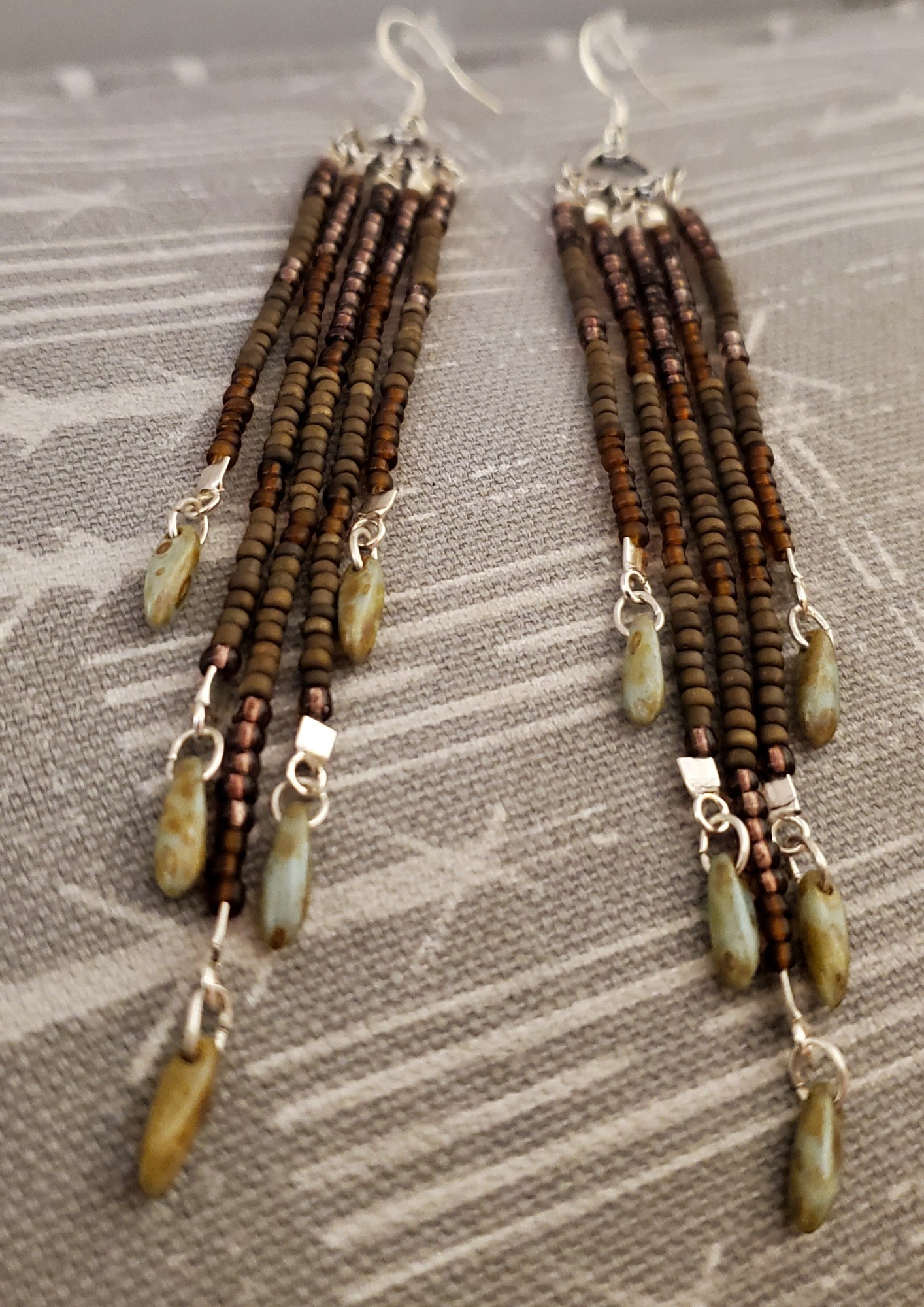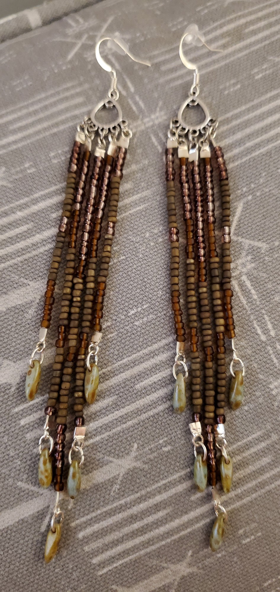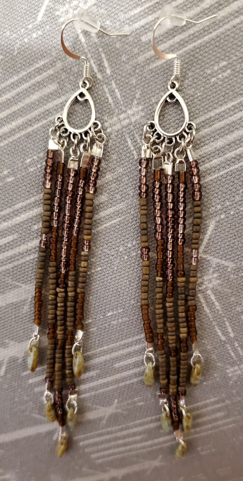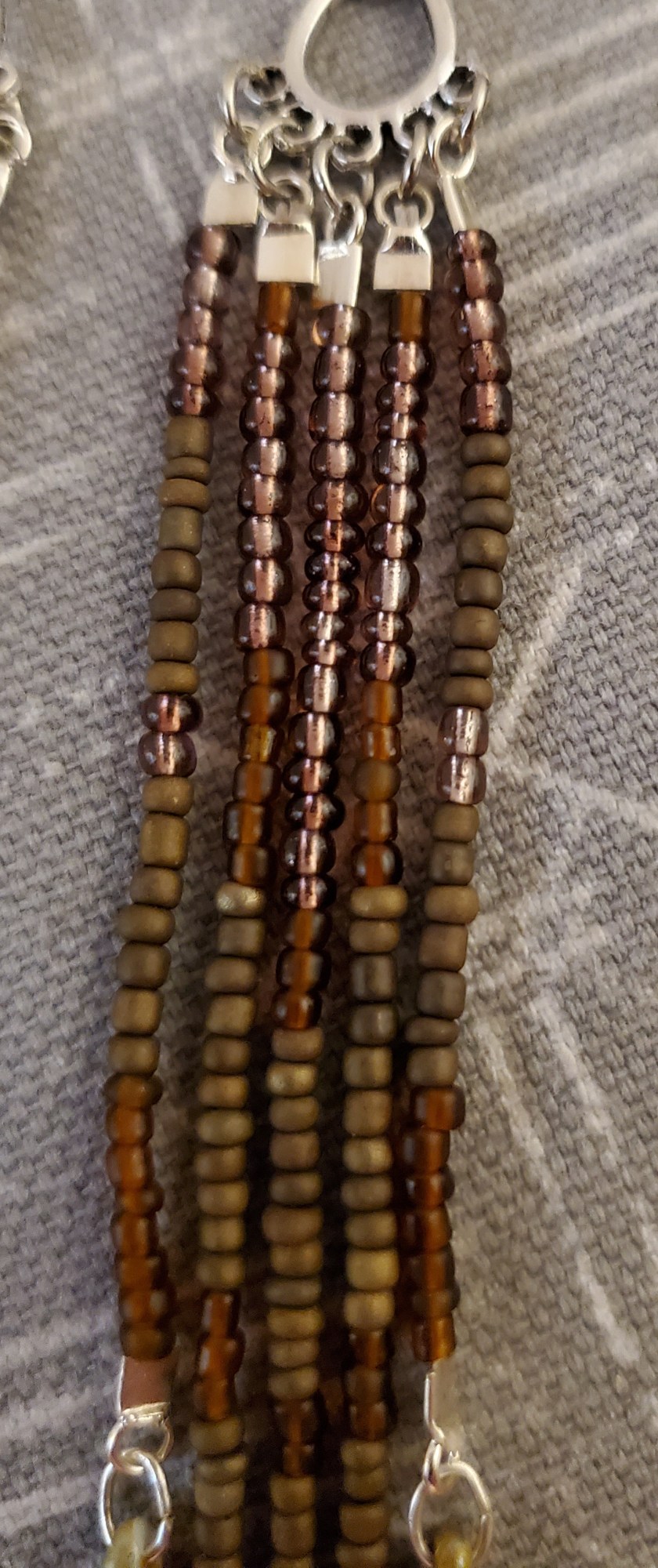 Vintage glass seed beads of taupe, lavender and brown paired with silver elements. Only one of its kind. Hypoallergenic.