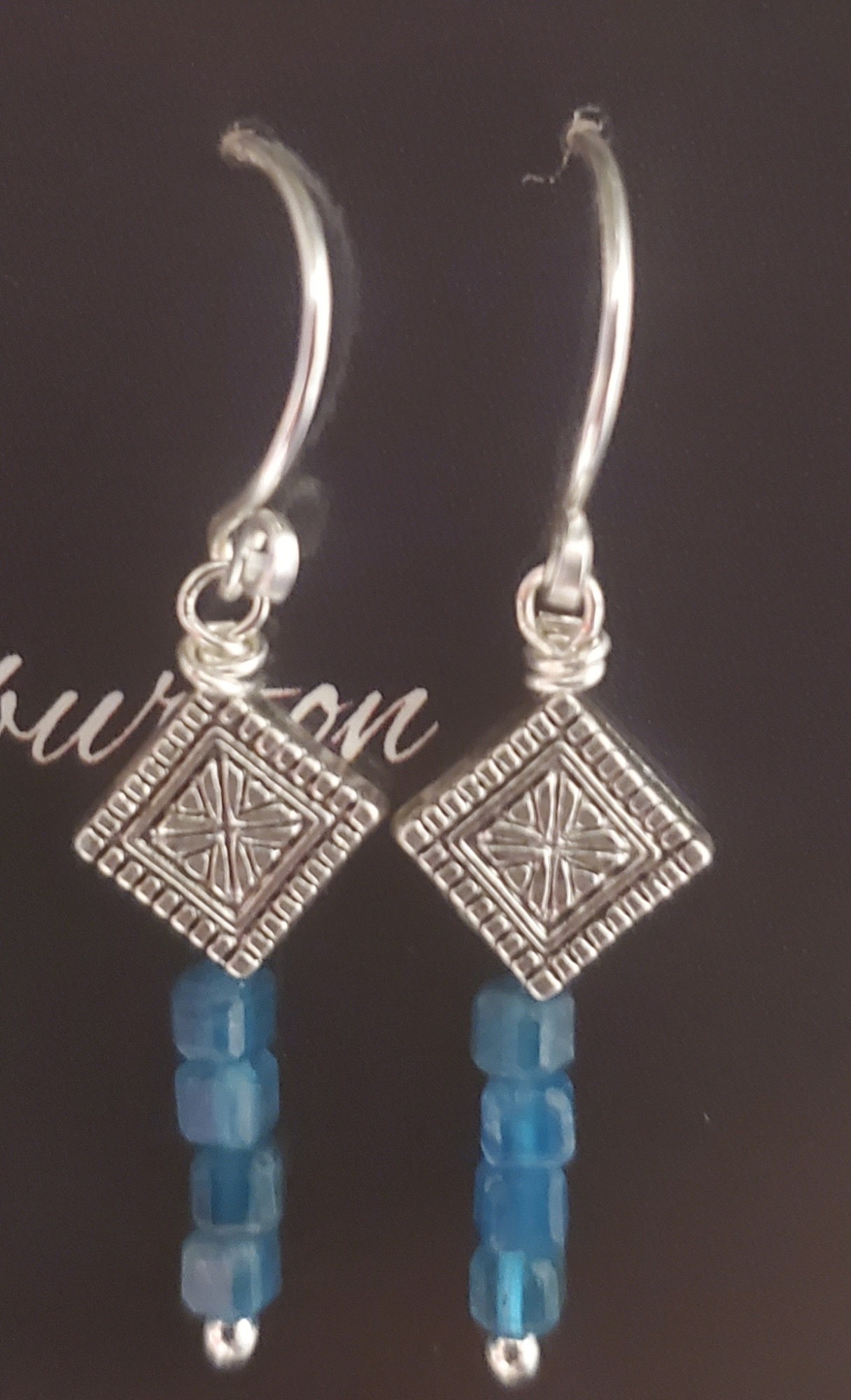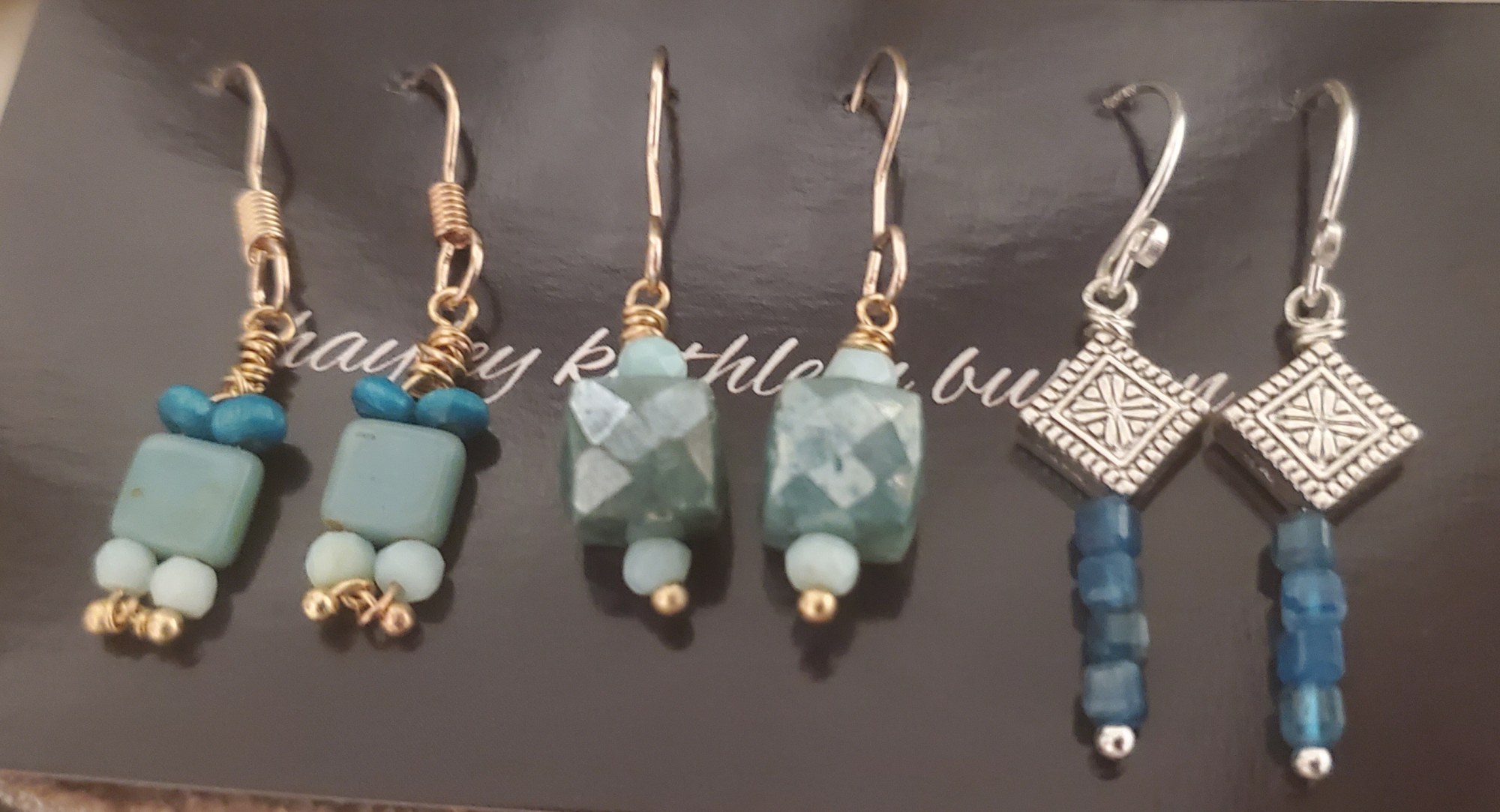 Elegant Trio of earrings made with Silverite, Opal, Apatite, Pure Silver, Wood, Glass and Brass. Perfect for gifting. Hypoallergenic. Only one of its kind.