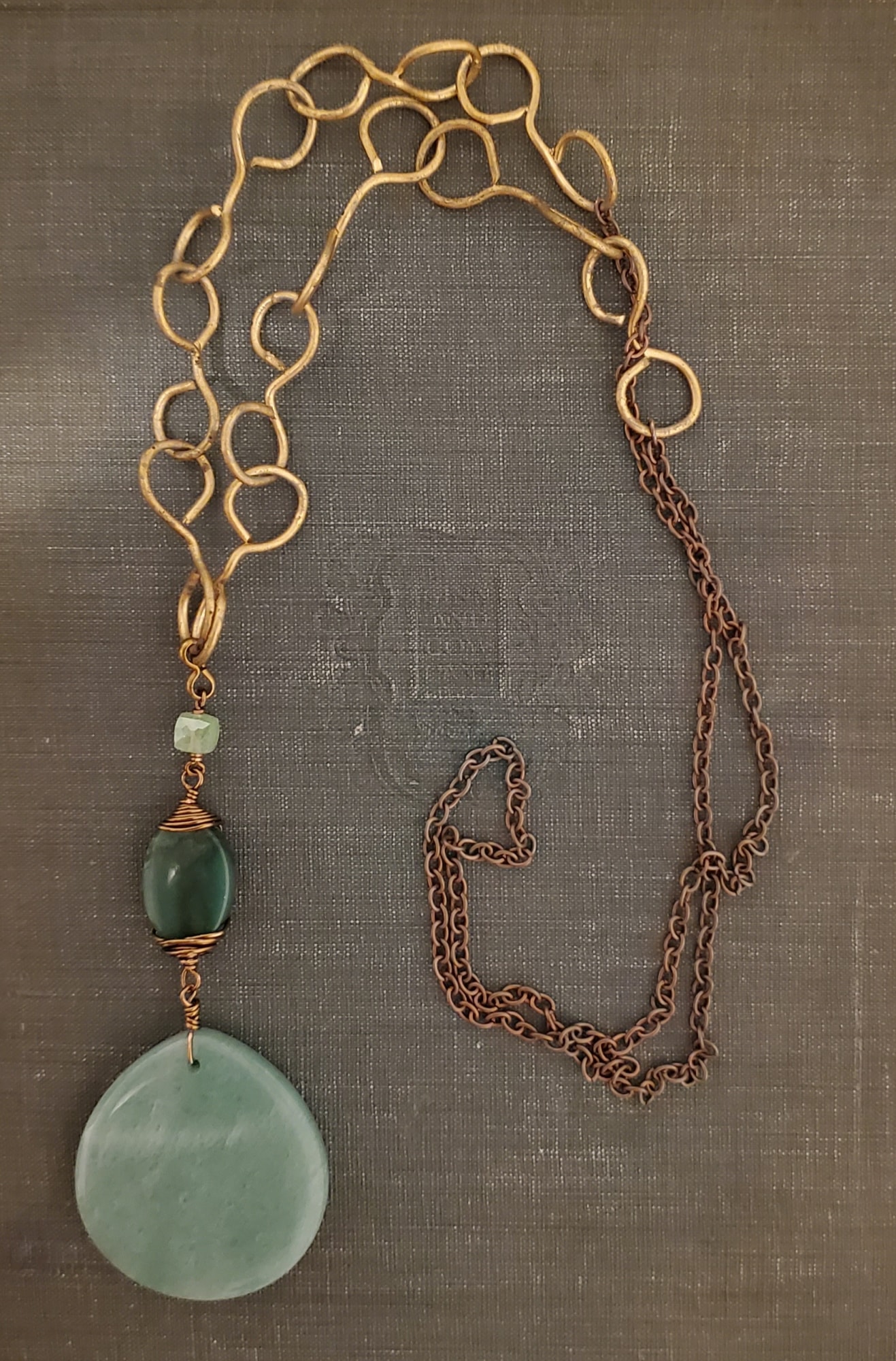 Inspired by vintage design, this stunning arrangement of Aventurine, Jade and Silverite adds an elegant and luxurious flare to any style. Hypoallergenic. Only one of its kind.