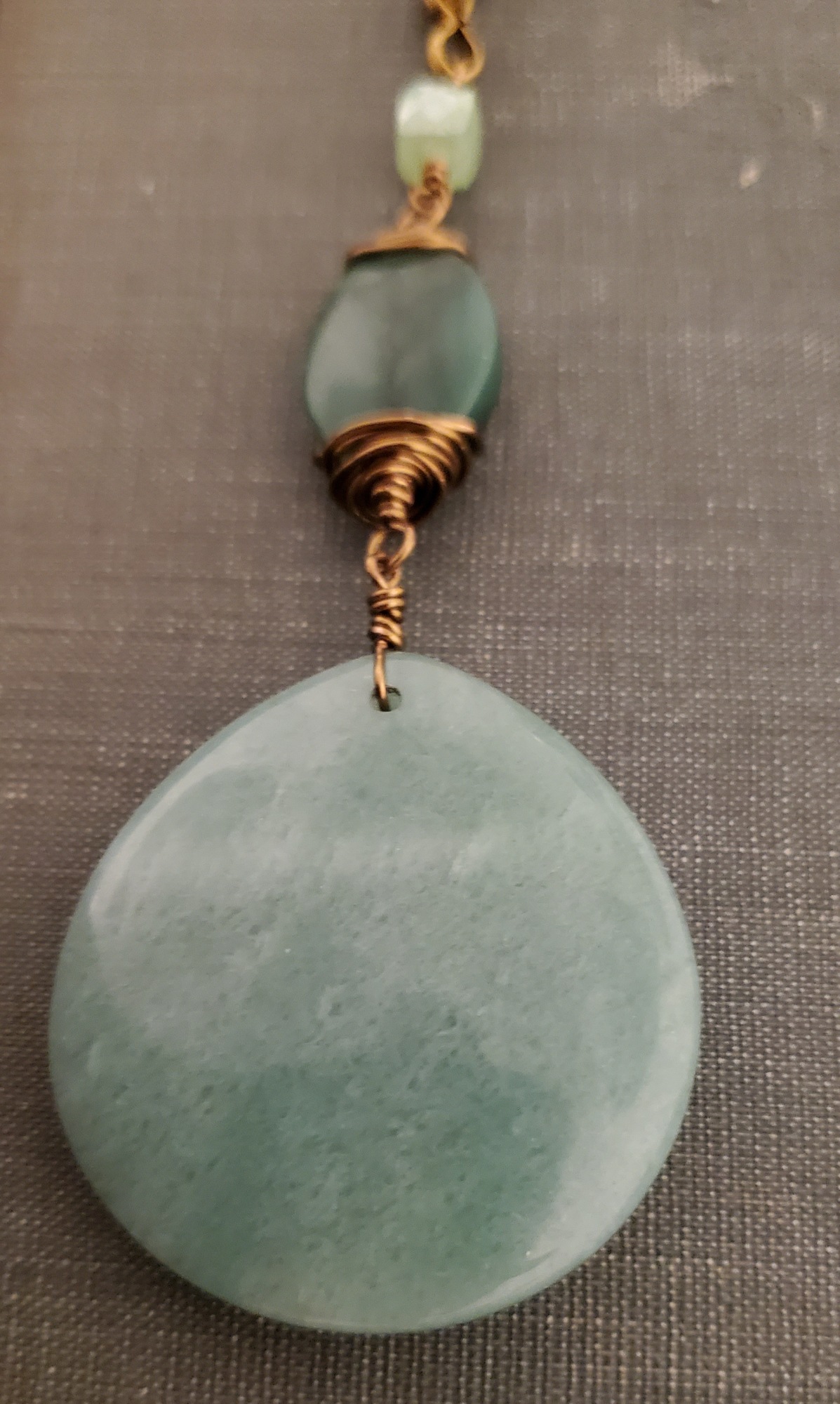 Inspired by vintage design, this stunning arrangement of Aventurine, Jade and Silverite adds an elegant and luxurious flare to any style. Hypoallergenic. Only one of its kind.