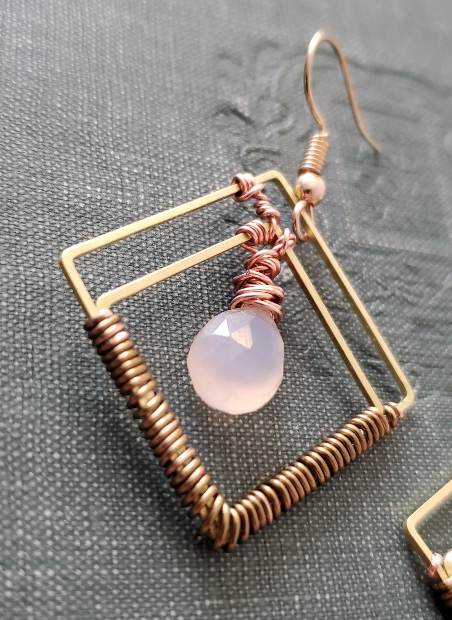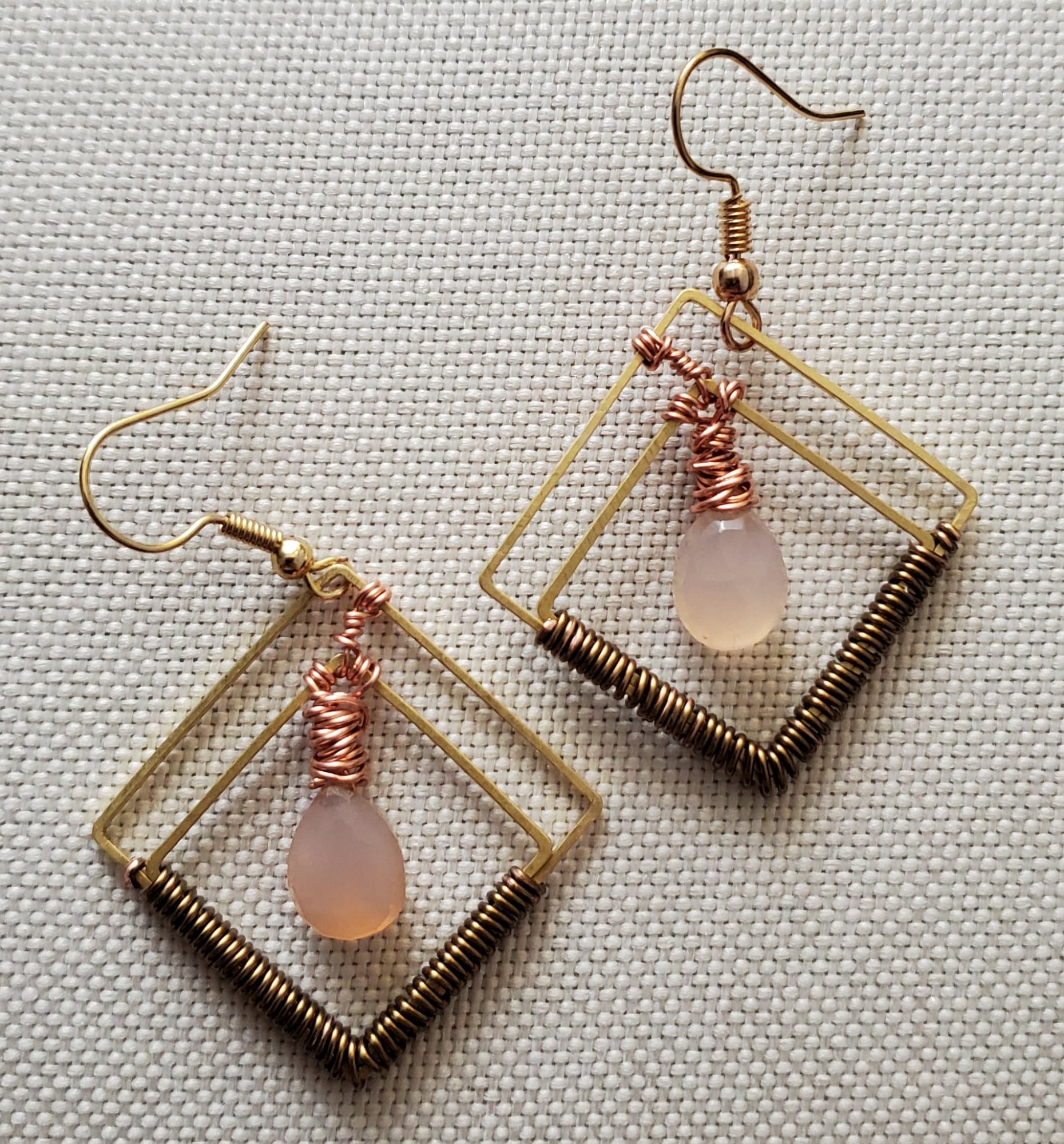 Lovely Peach Chalcedony beautifully wrapped in Copper around Brass. A must for your collection. Inspired by Vintage design. Hypoallergenic. Only one of its kind.