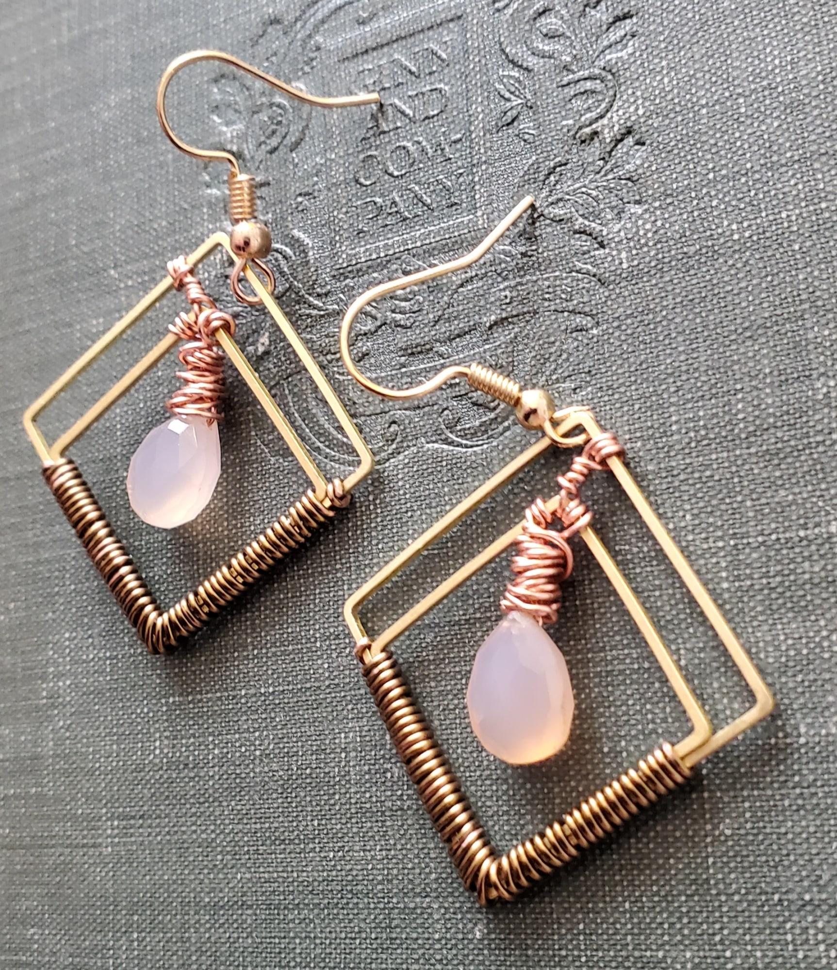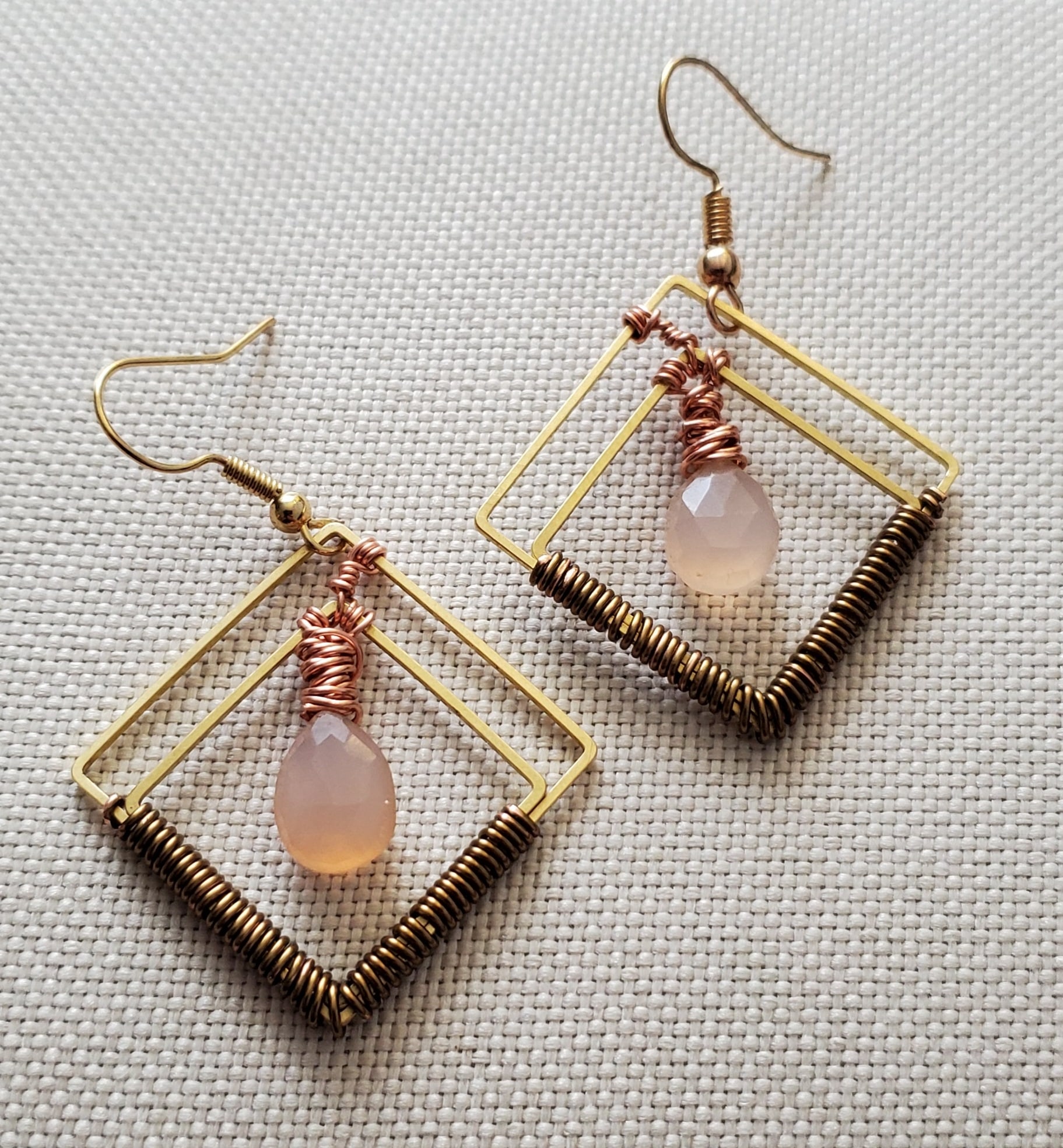 Lovely Peach Chalcedony beautifully wrapped in Copper around Brass. A must for your collection. Inspired by Vintage design. Hypoallergenic. Only one of its kind.