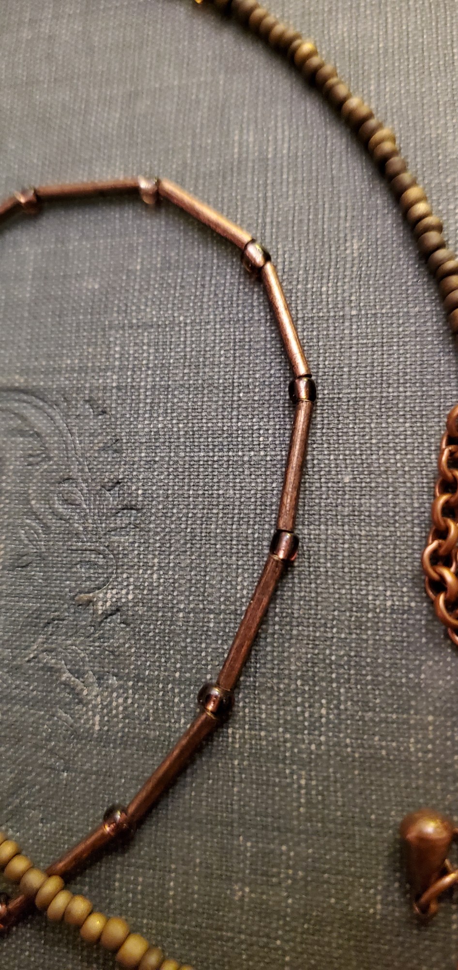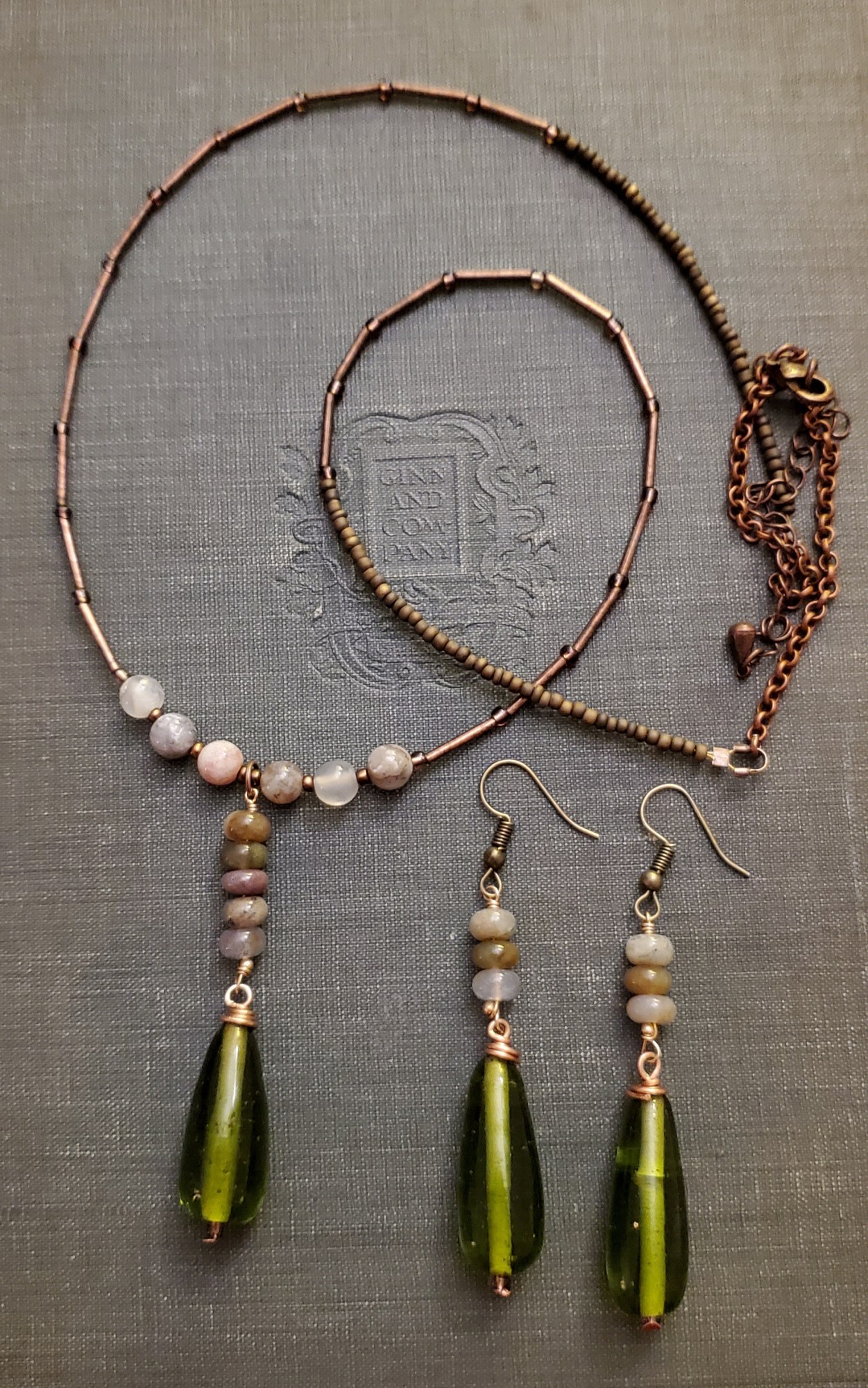 Authentic Vintage Blown-Glass Teardrops mixed with romantic earth-toned Fancy Jasper beads and luxurious Copper. A beautiful addition to your collection. A must have for collectors rare glass beads. Hypoallergenic. Only one of its kind.