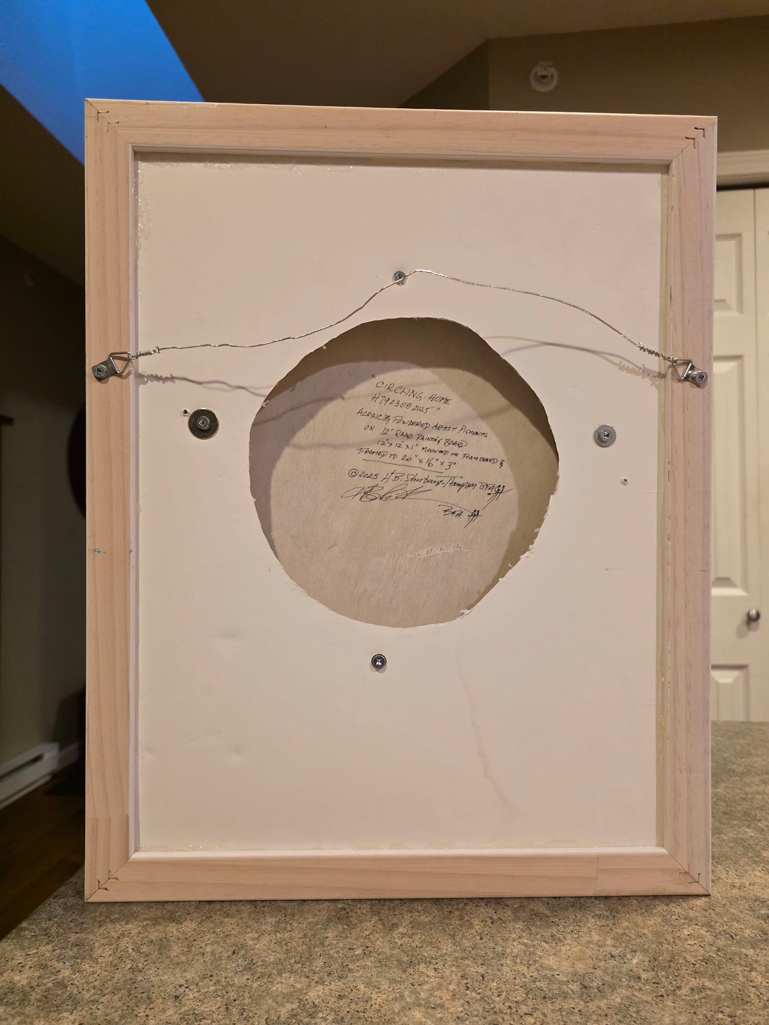 - Acrylic, acrylic mediums, artist powdered pigments, 12" round wooden panel