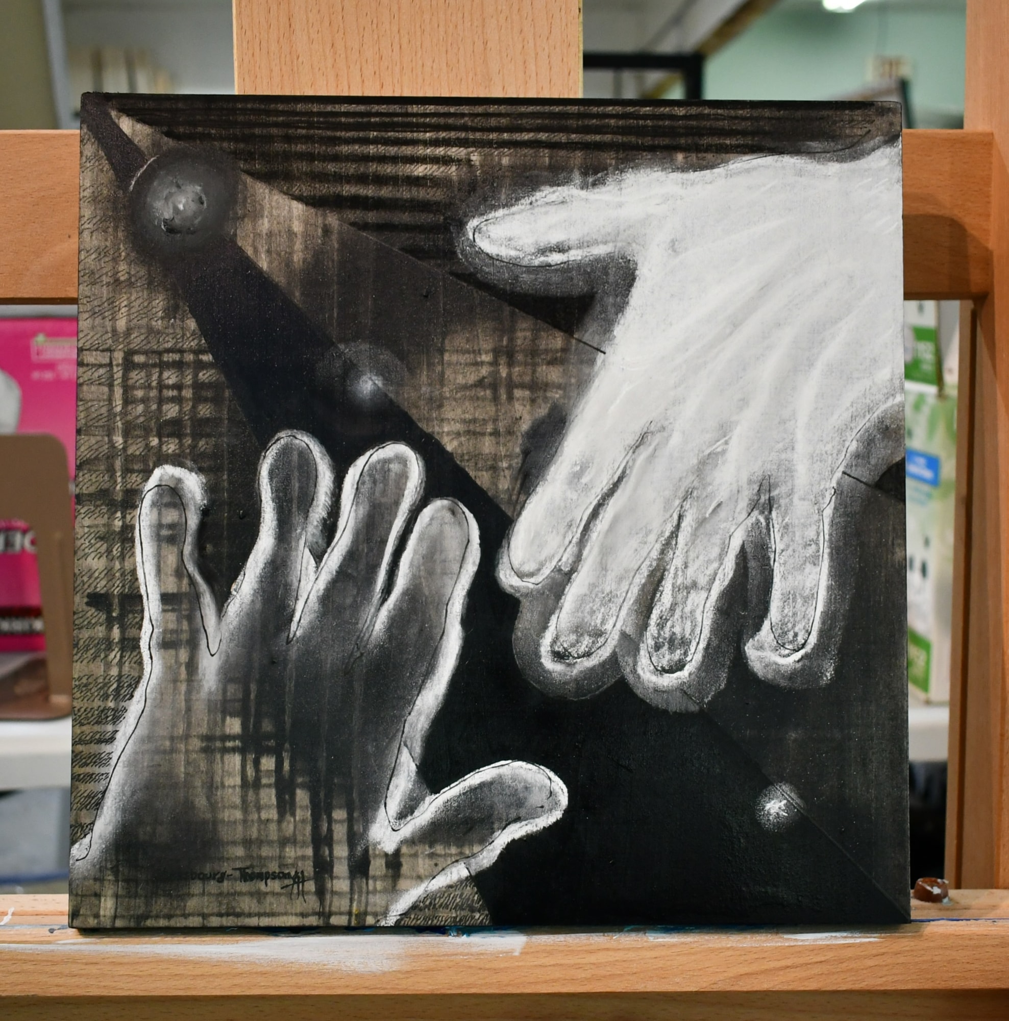 - acrylic, Charcoal water mix, graphite, charcoal, acrylic gel, conte