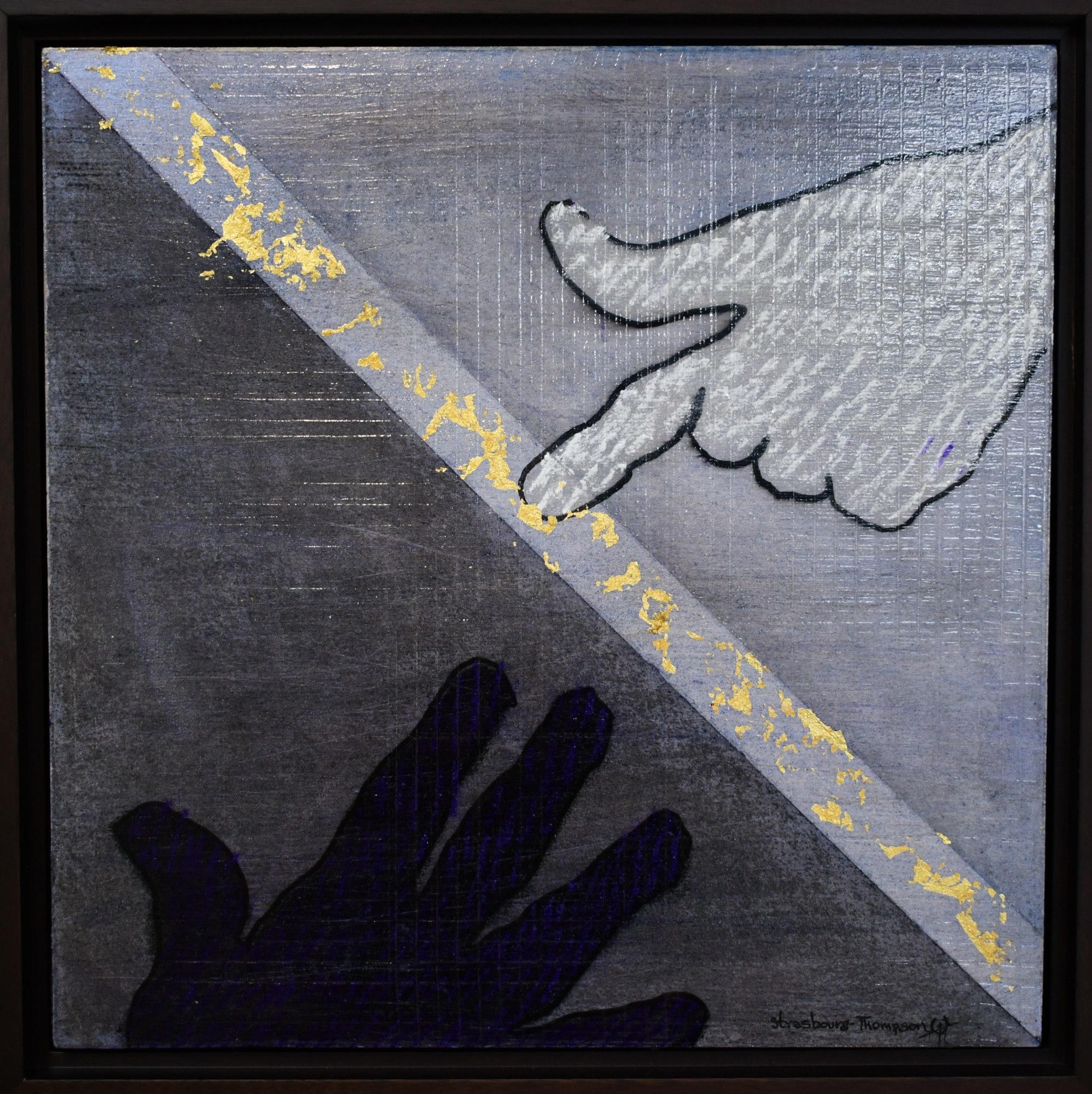 - Acrylic, Acrylic Varnish, 24k gold leaf, W/N Fineliner, charcoal, conte, colored charcoal, a/f fixative on 12" x 12" x 1" birch panel