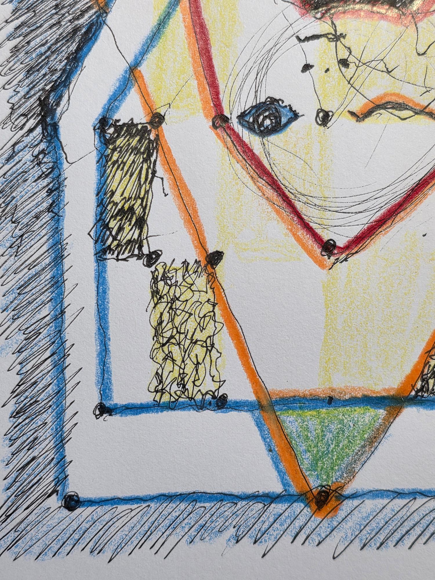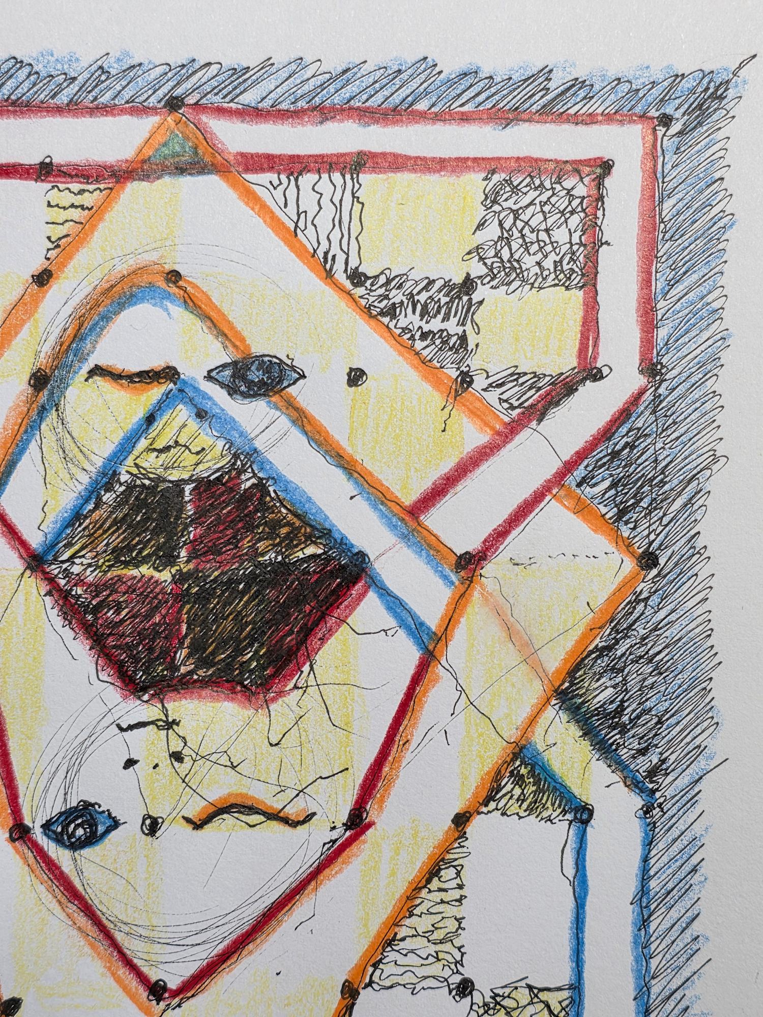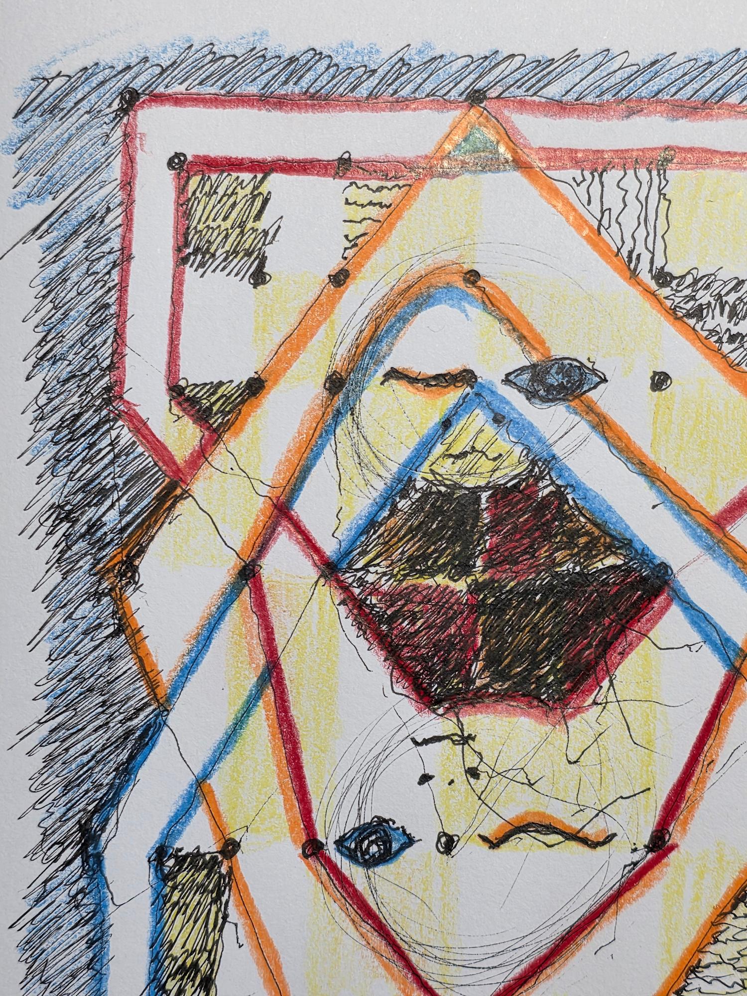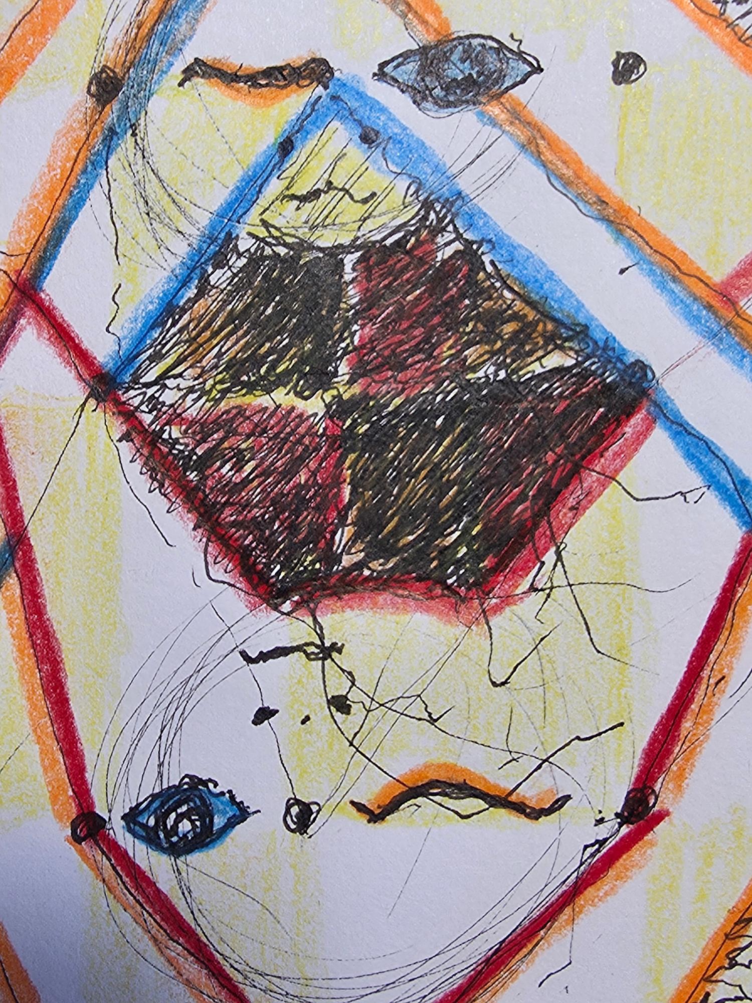 - W/N Fineliner black artist pigment pens, Prismacolor Premium Artist Grade colored pencils, White acrylic on 75lb. A/F paper