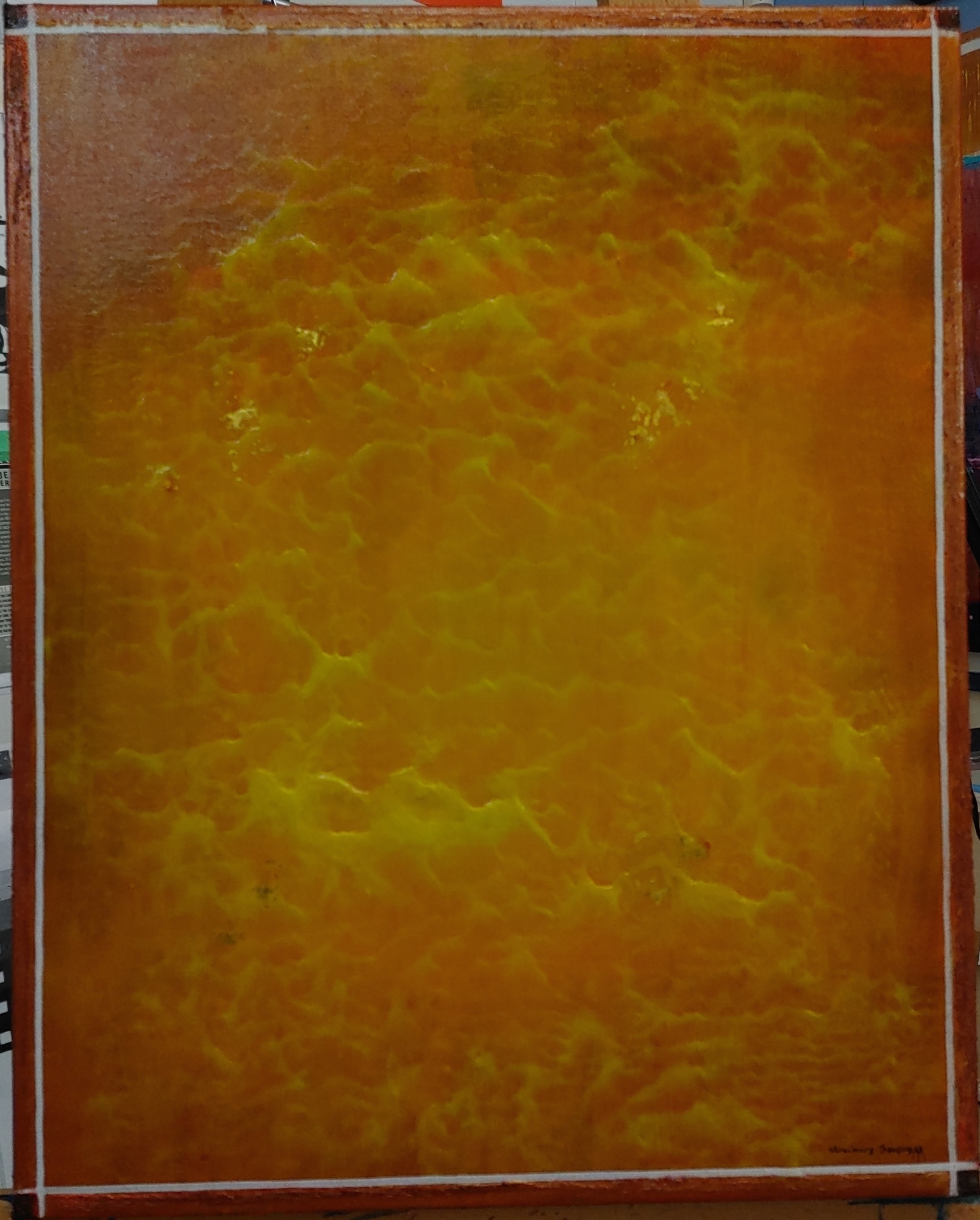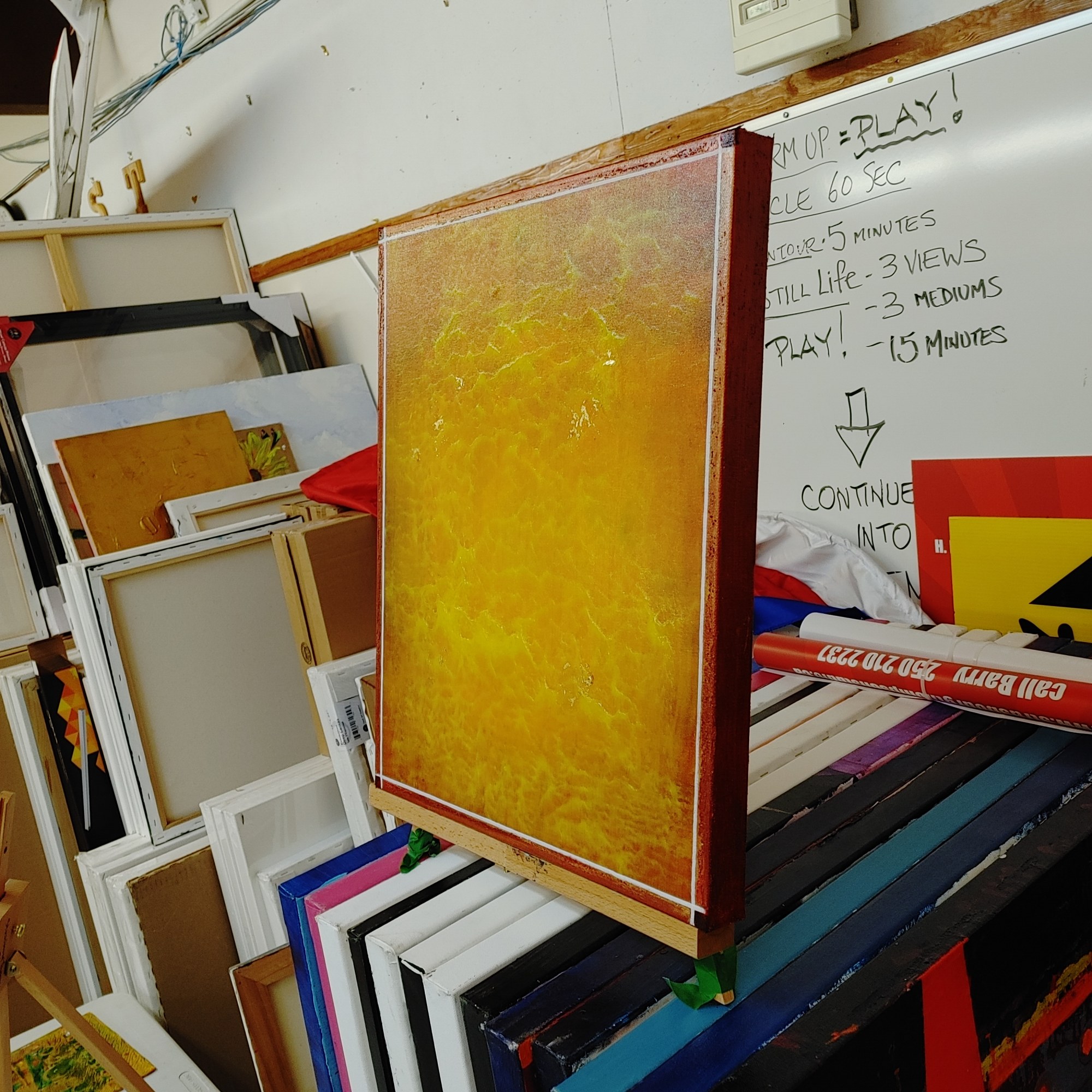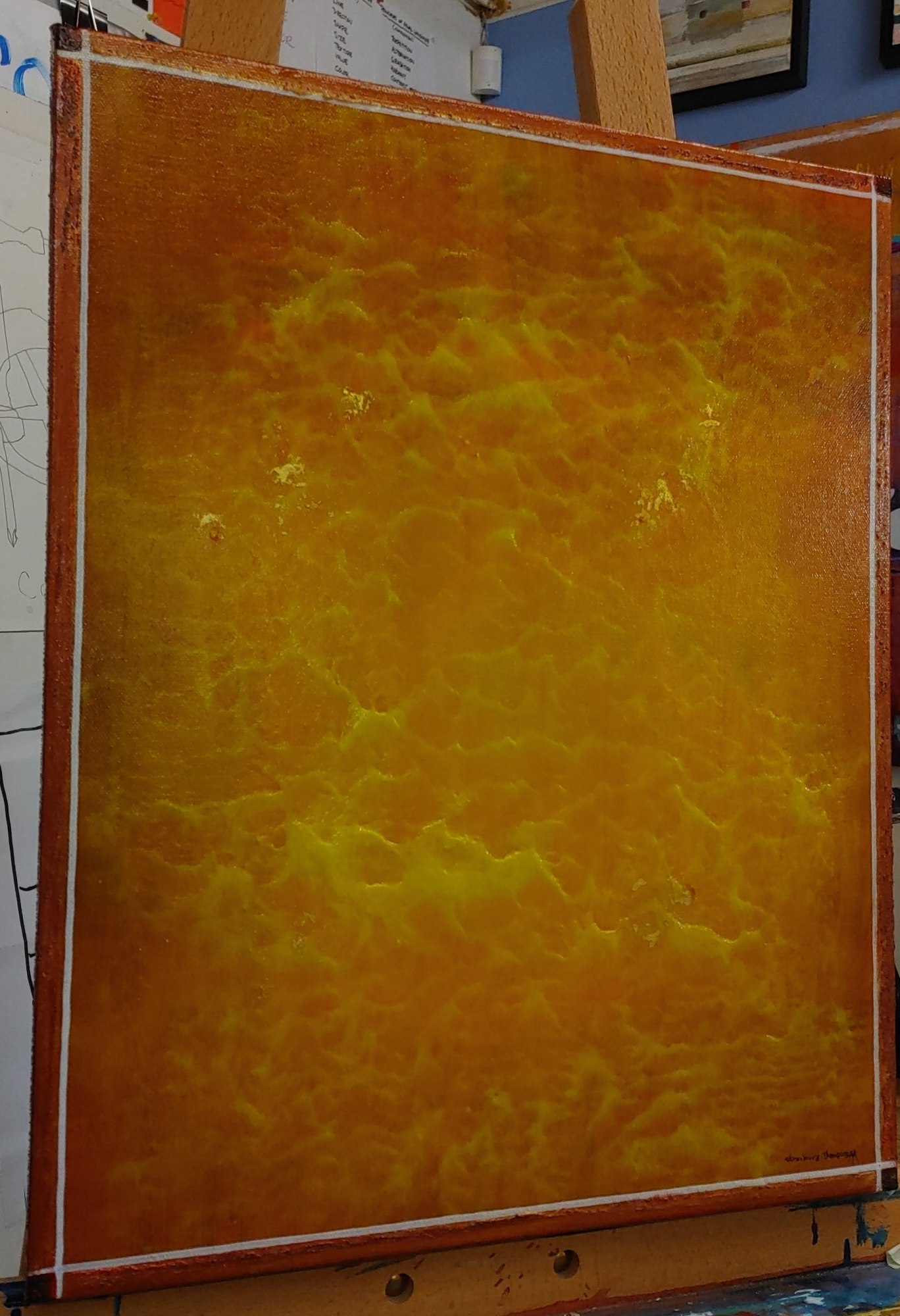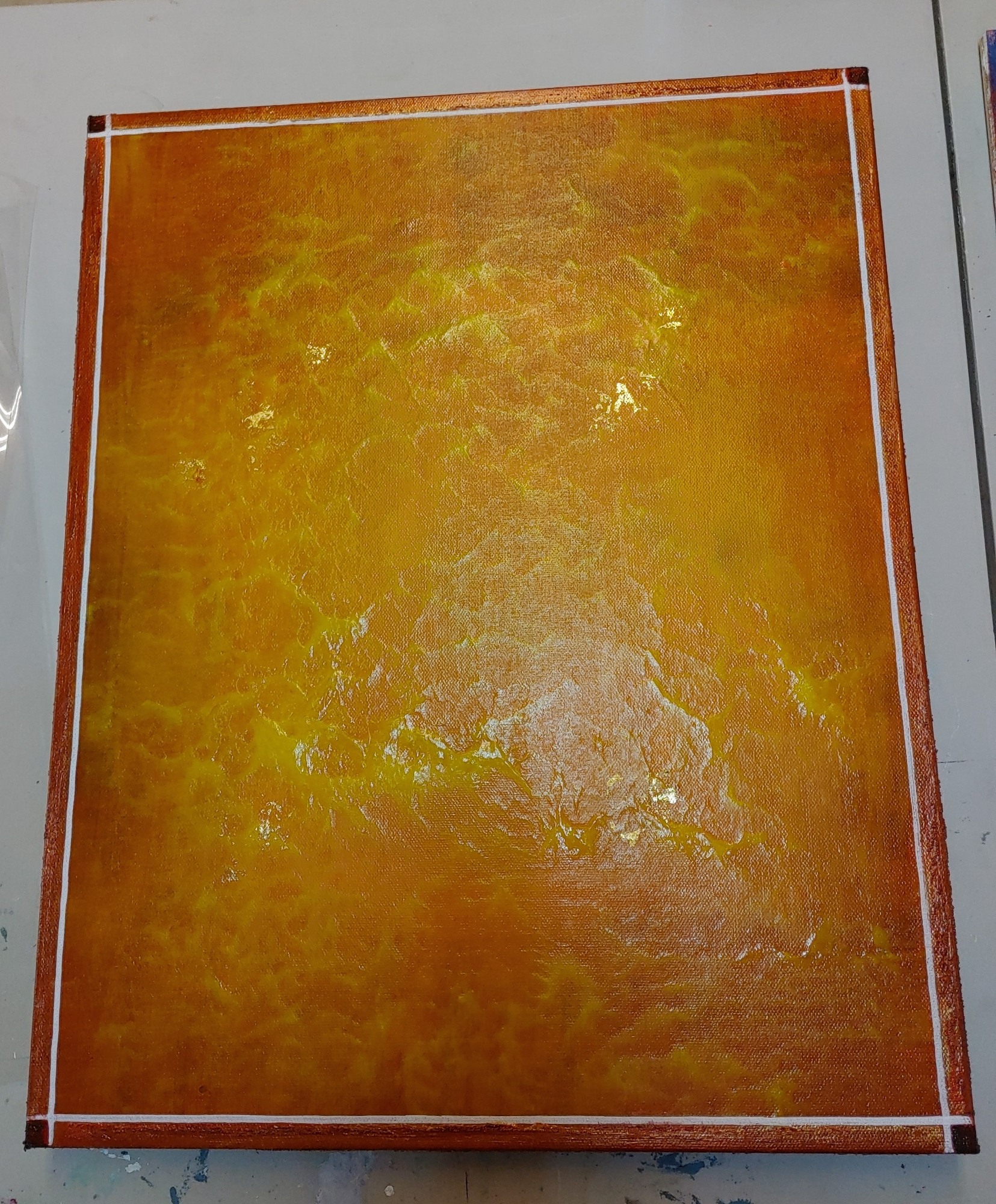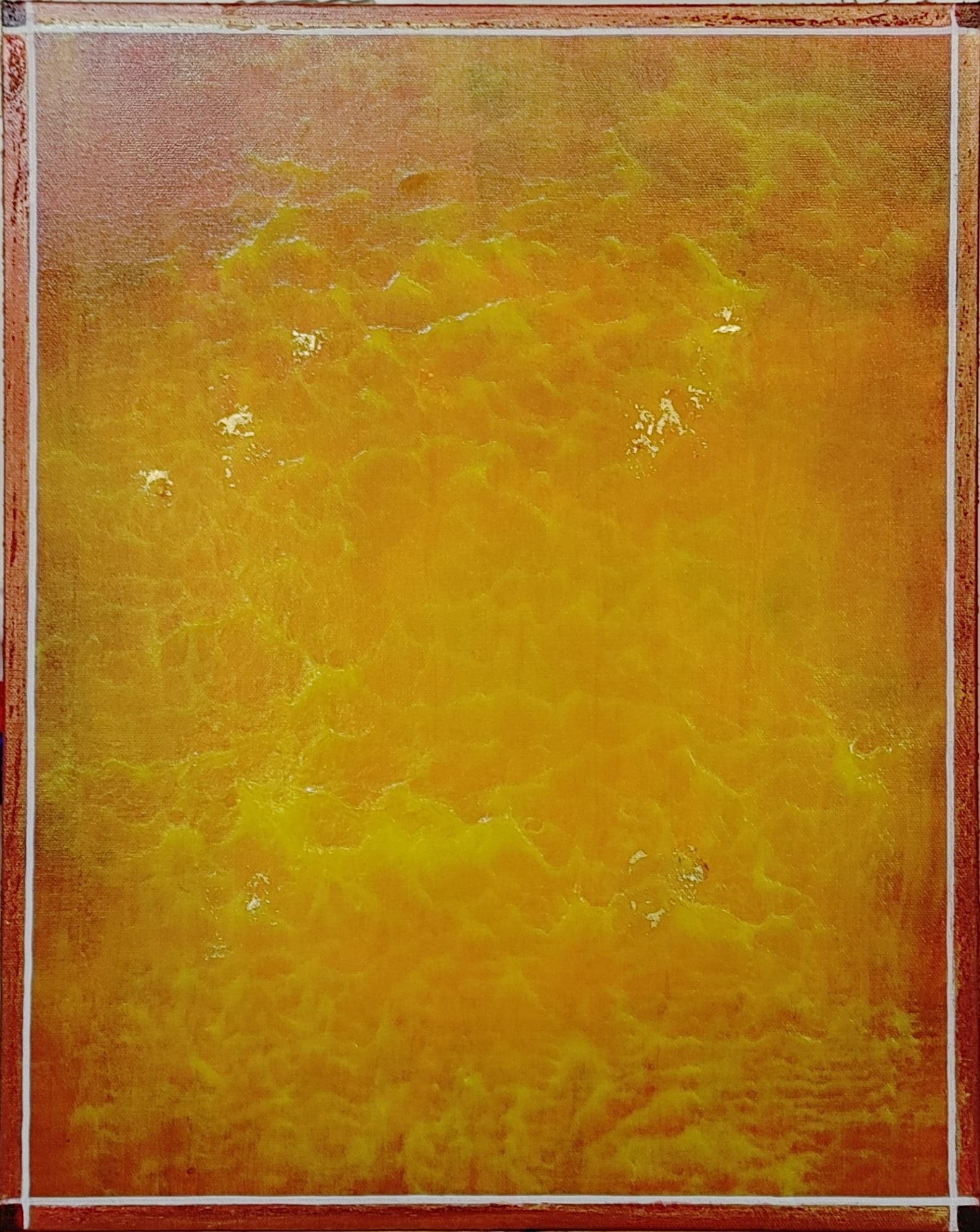 - Acrylic, 24K Gold Leaf, Posca marker, Glass Beads gel on 20 x 16 x 2 canvas