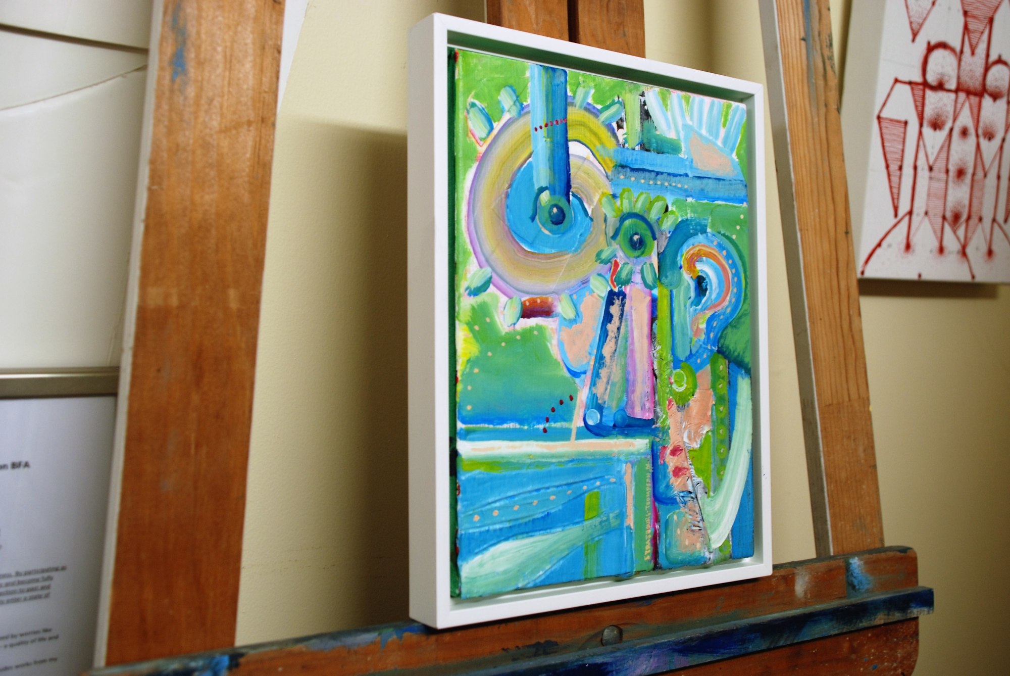 MessageThis 12" x 9" mixed media self portrait started at the Nanaimo Art Gallery in Sara Robichaud's workshop several months ago. I was not completely happy with it at that time so I put it away for a while. Tonight I felt that I understood the subject matter sufficiently to tackle the painting again. The painting now contains my sense of "Paradise" when I am painting. Now it is "balanced".
