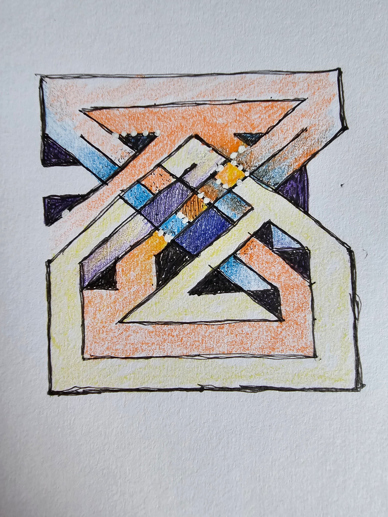 - W/N Fineliner black artist pigment pens, Prismacolor Premium Artist Grade colored pencils, White acrylic on 75lb. A/F paper