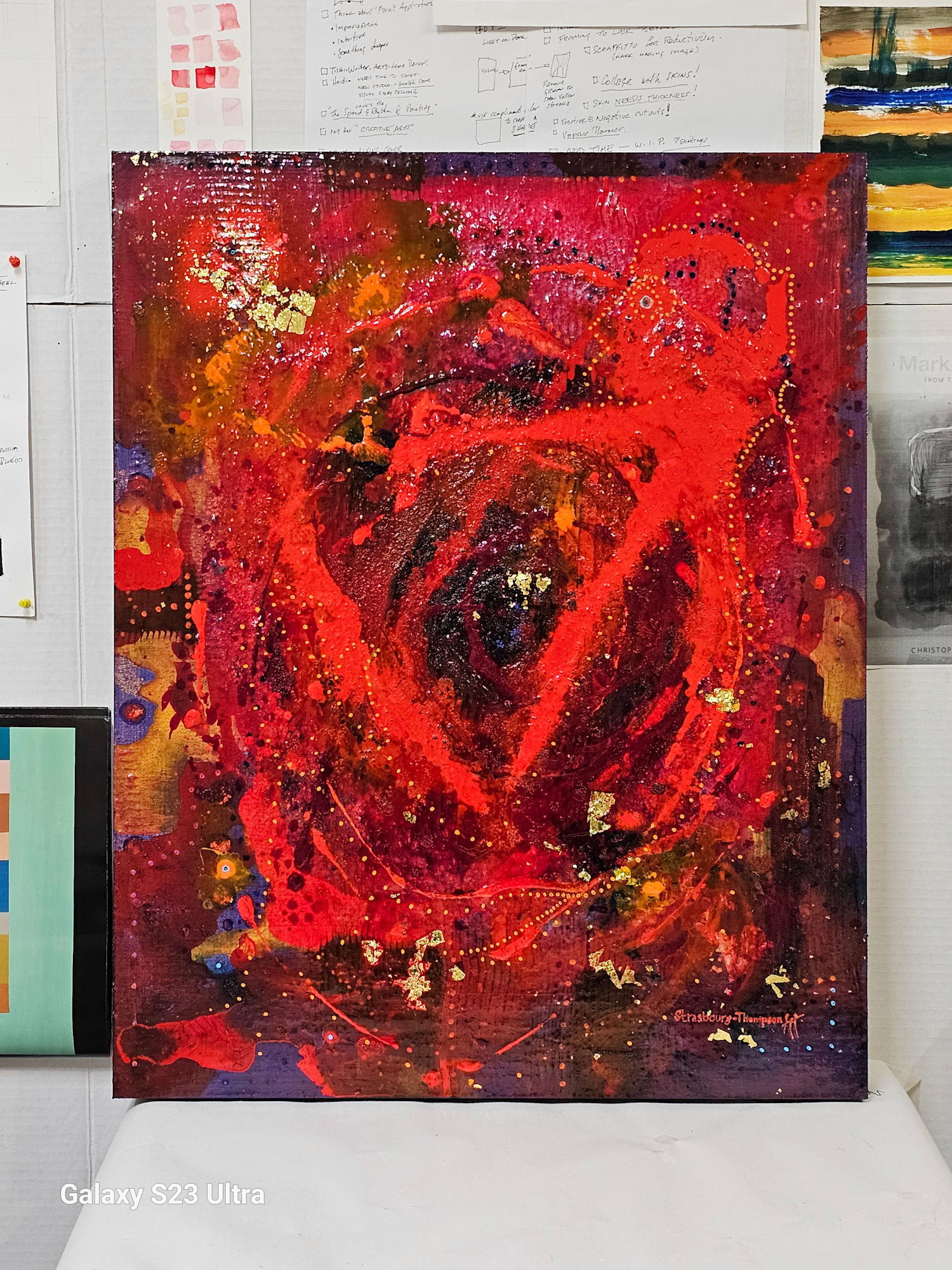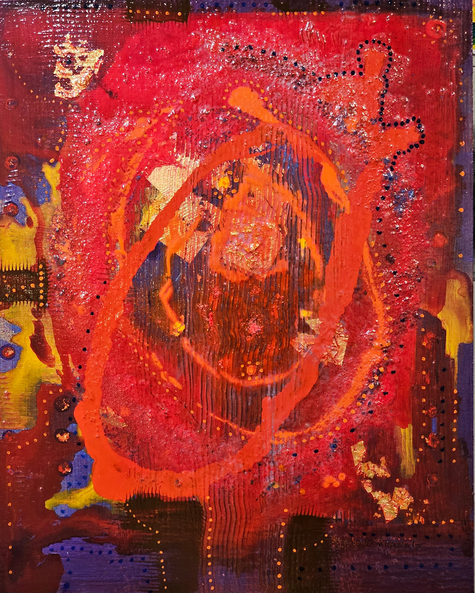 - 22k gold leaf, German gold leaf, acrylic medium, powdered artist grade pigments,acrylic on wood panel.s