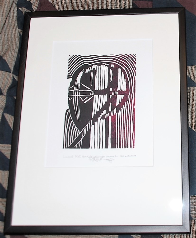 Linocut print shown is A/f museum framed proof (one of)A/P.