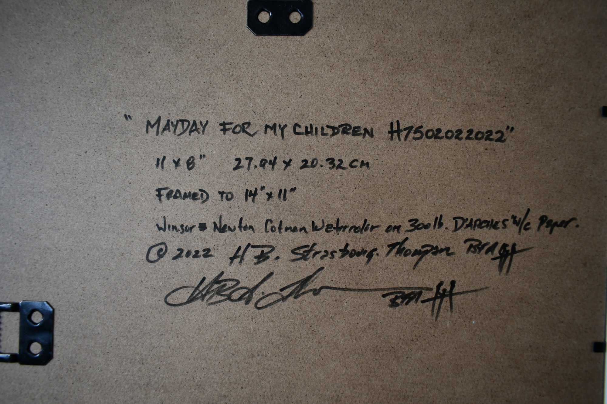 - Signature: On face "Strasbourg-Thompson anagram" On rear of frame "HB Strasbourg-Thompson BFA" & anagram