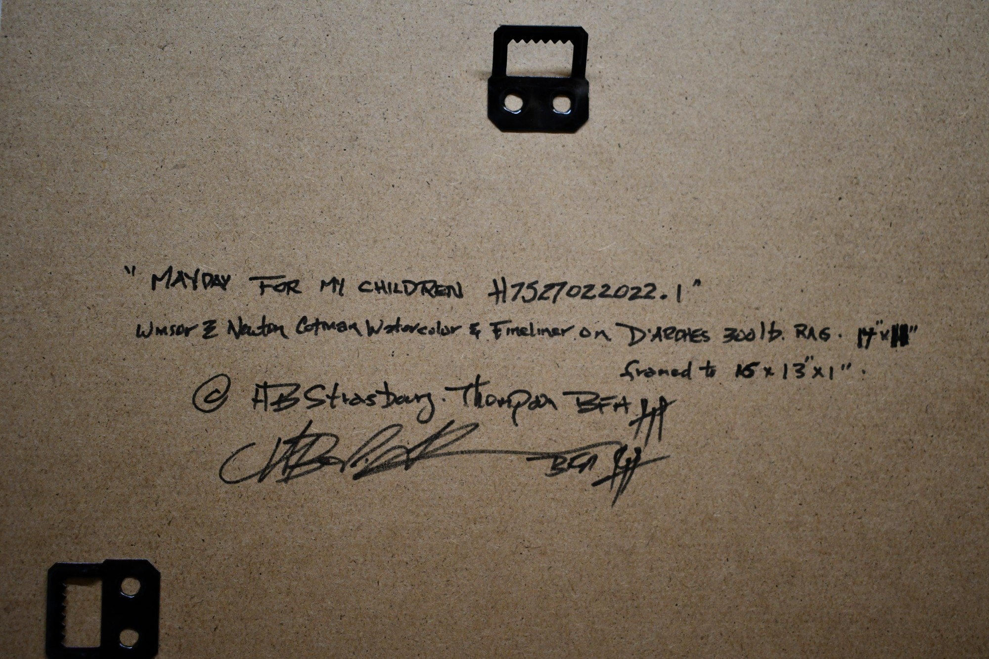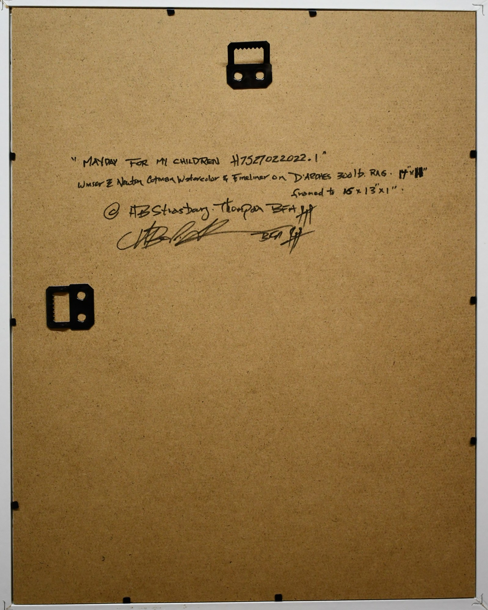 - Signature: On Face "Strasbourg-Thompson anagram" On back of D'Arches 14 x 11 rag "HB Strasbourg-Thompson BFA ..anagram"