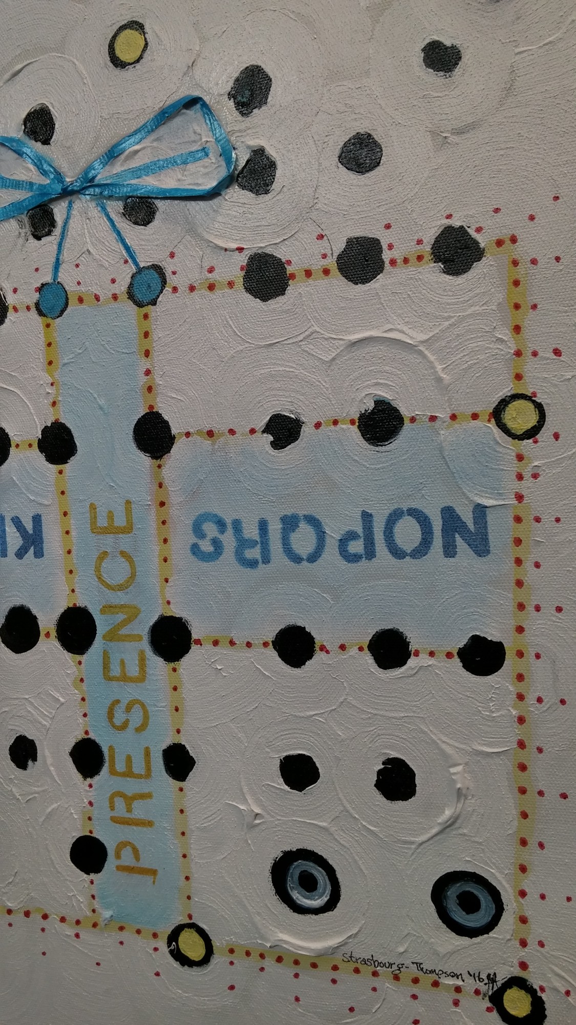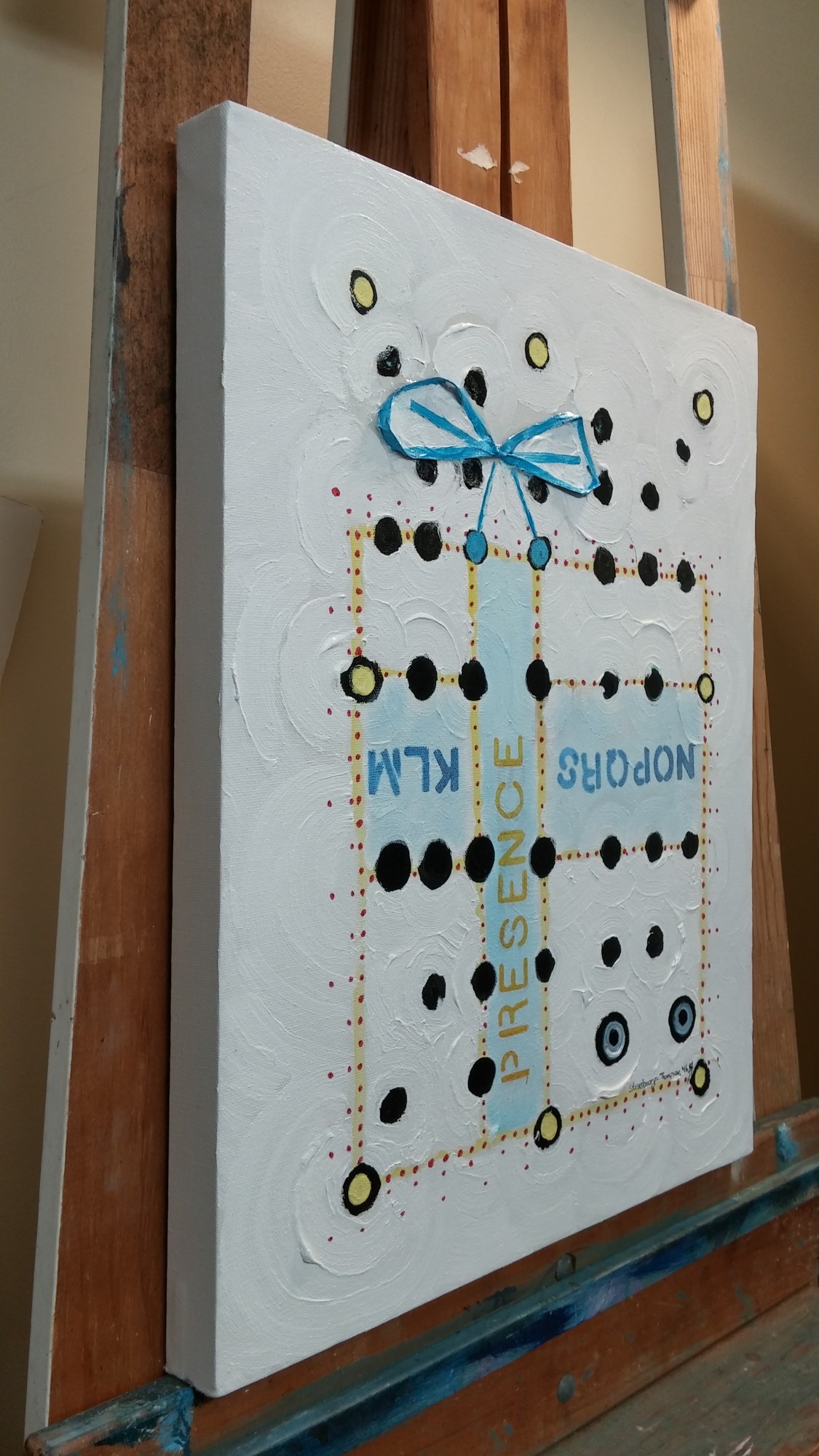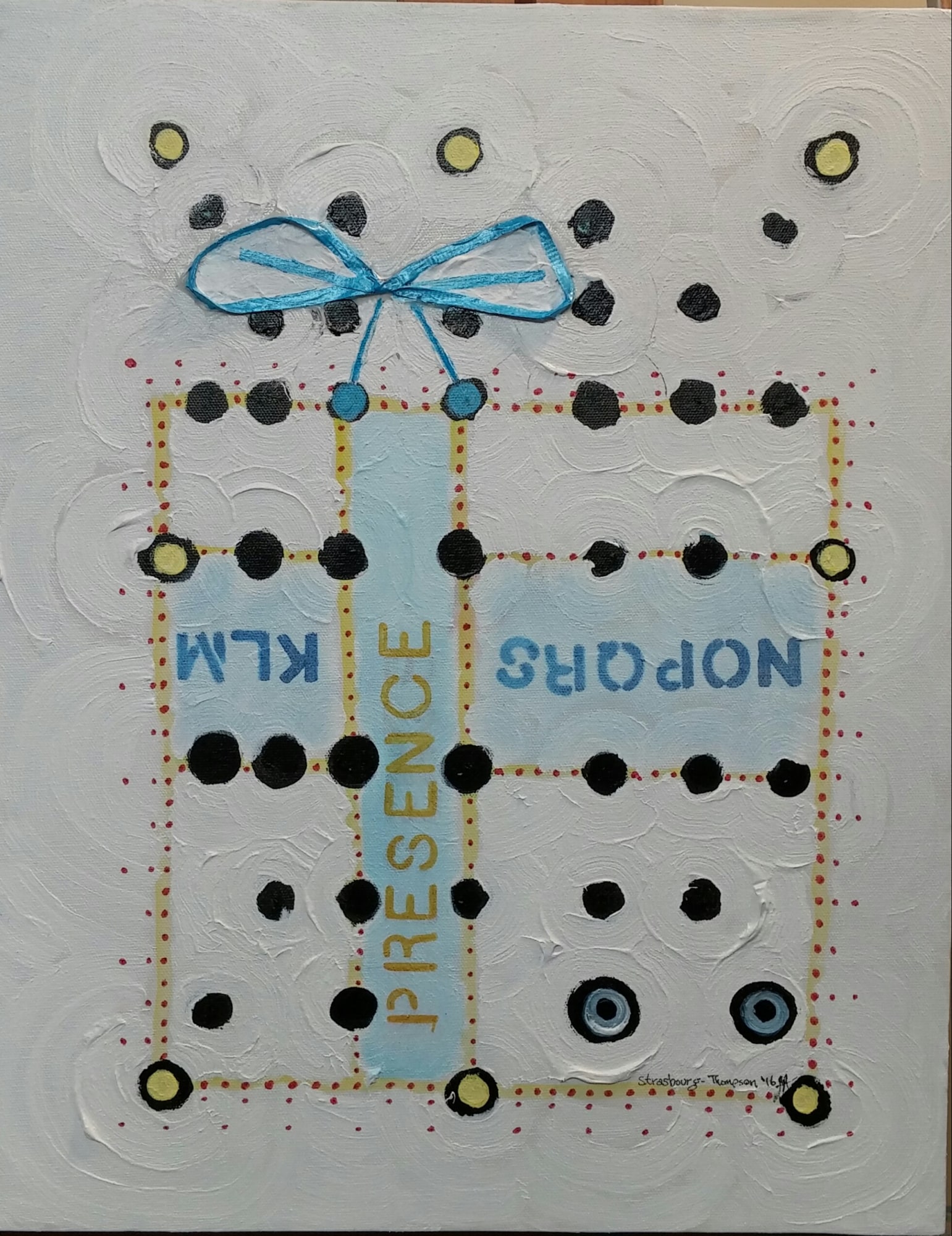 MessageDuring a teaching on mindful meditation I understood what a huge gift it was to understand how to limit my unwise thoughts and just be present to myself others and painting. This work is my celabration of that education and life changing way of being.