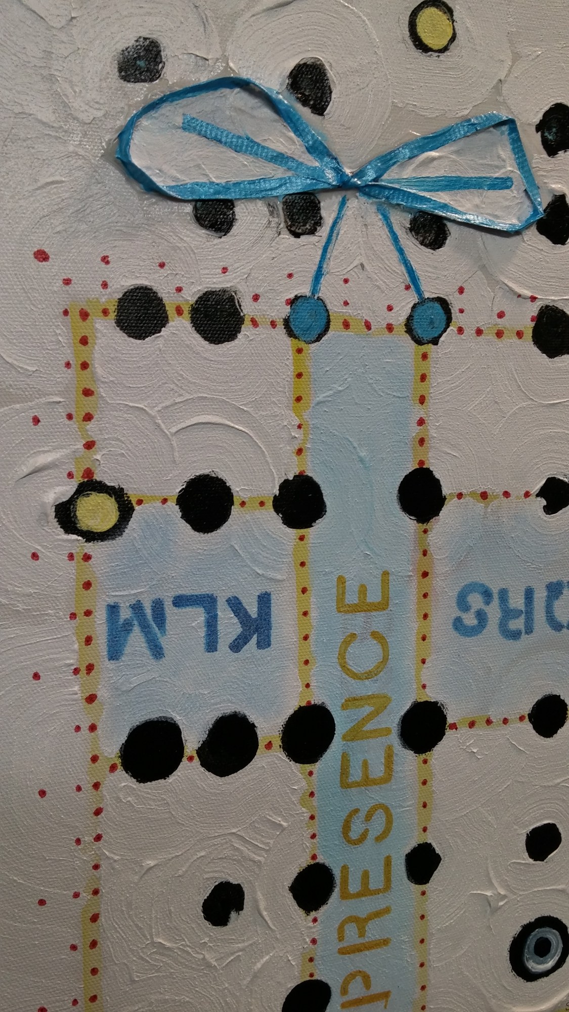 MessageDuring a teaching on mindful meditation I understood what a huge gift it was to understand how to limit my unwise thoughts and just be present to myself others and painting. This work is my celabration of that education and life changing way of being.