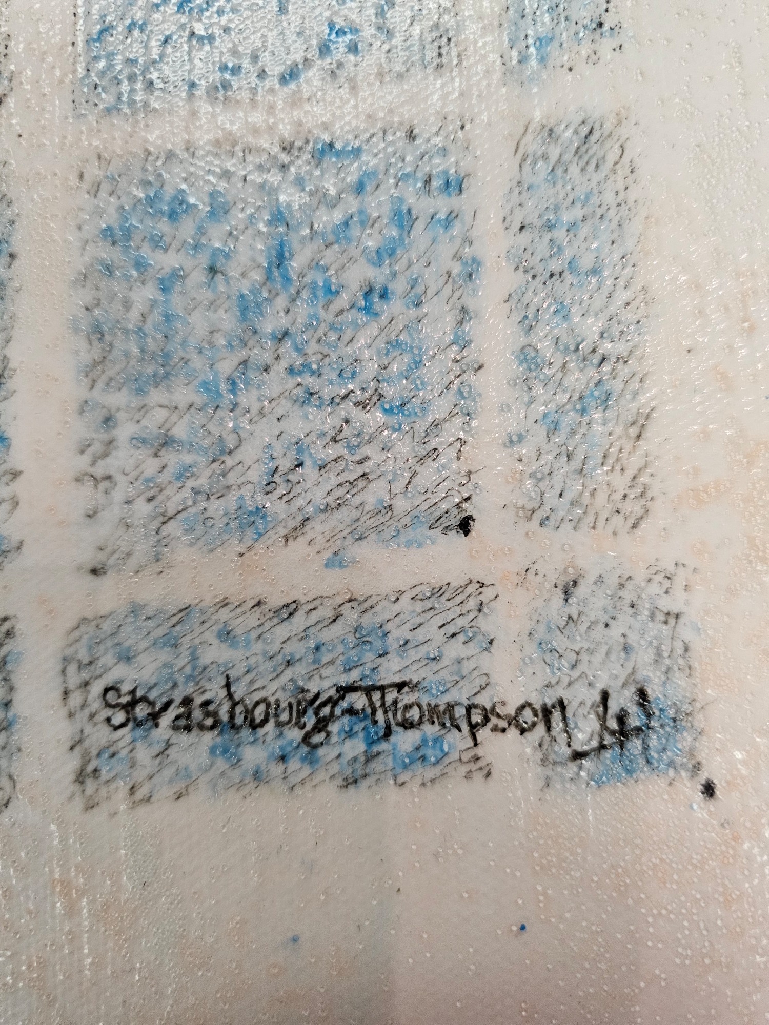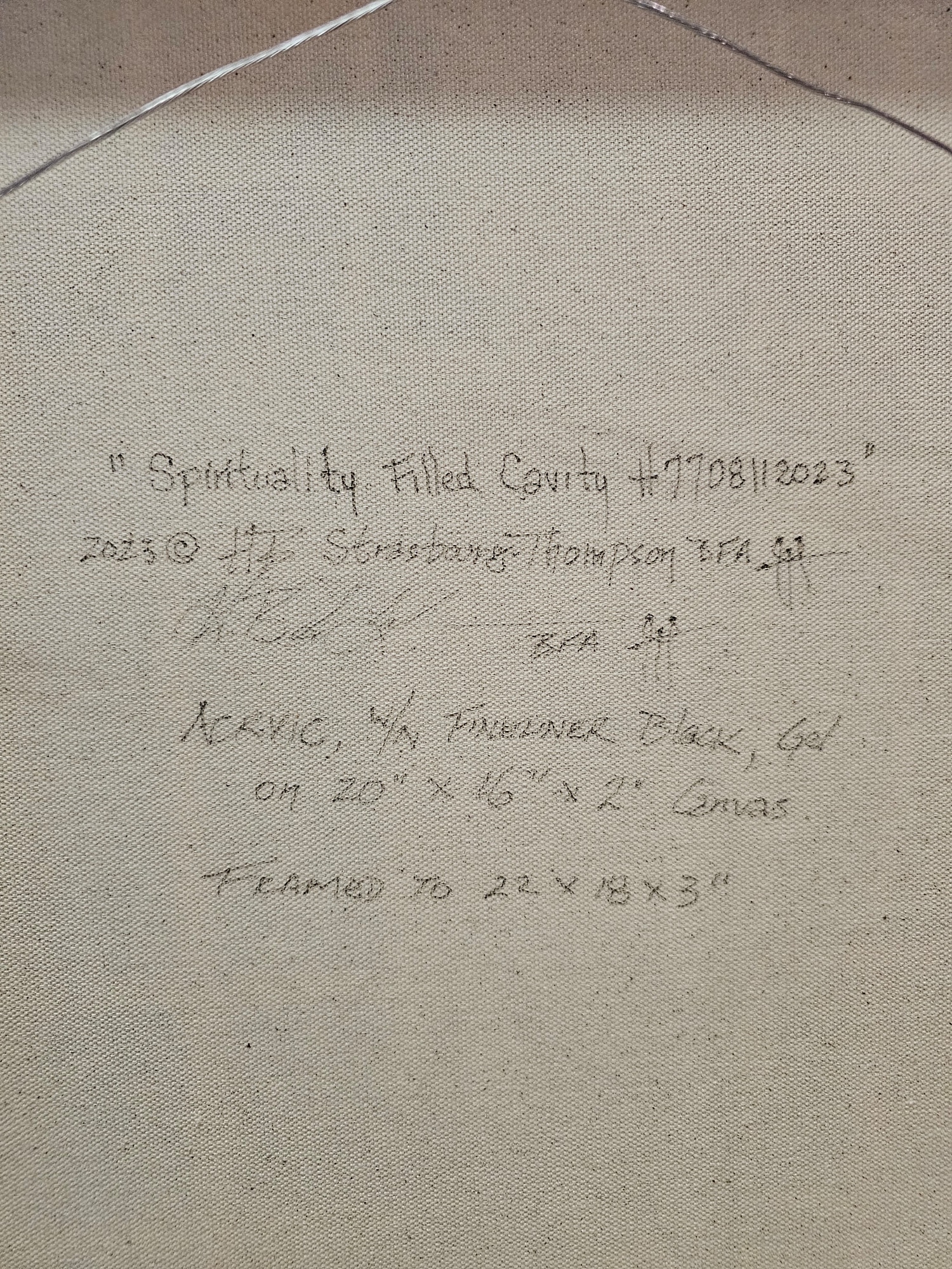 - Signature: Lower right face "Strasbourg-Thompson & anagram" Back of canvas "Strasbourg-Thompson & anagram"