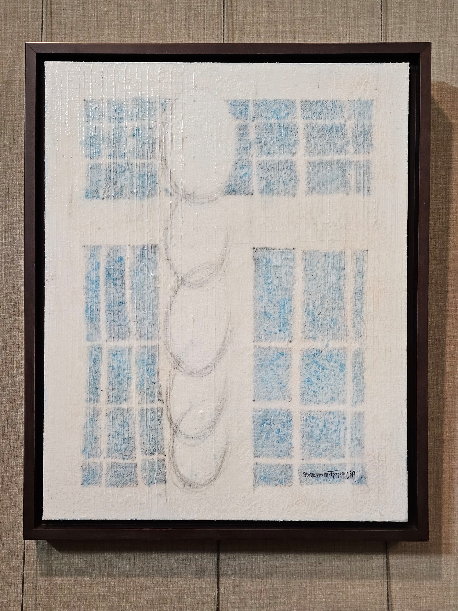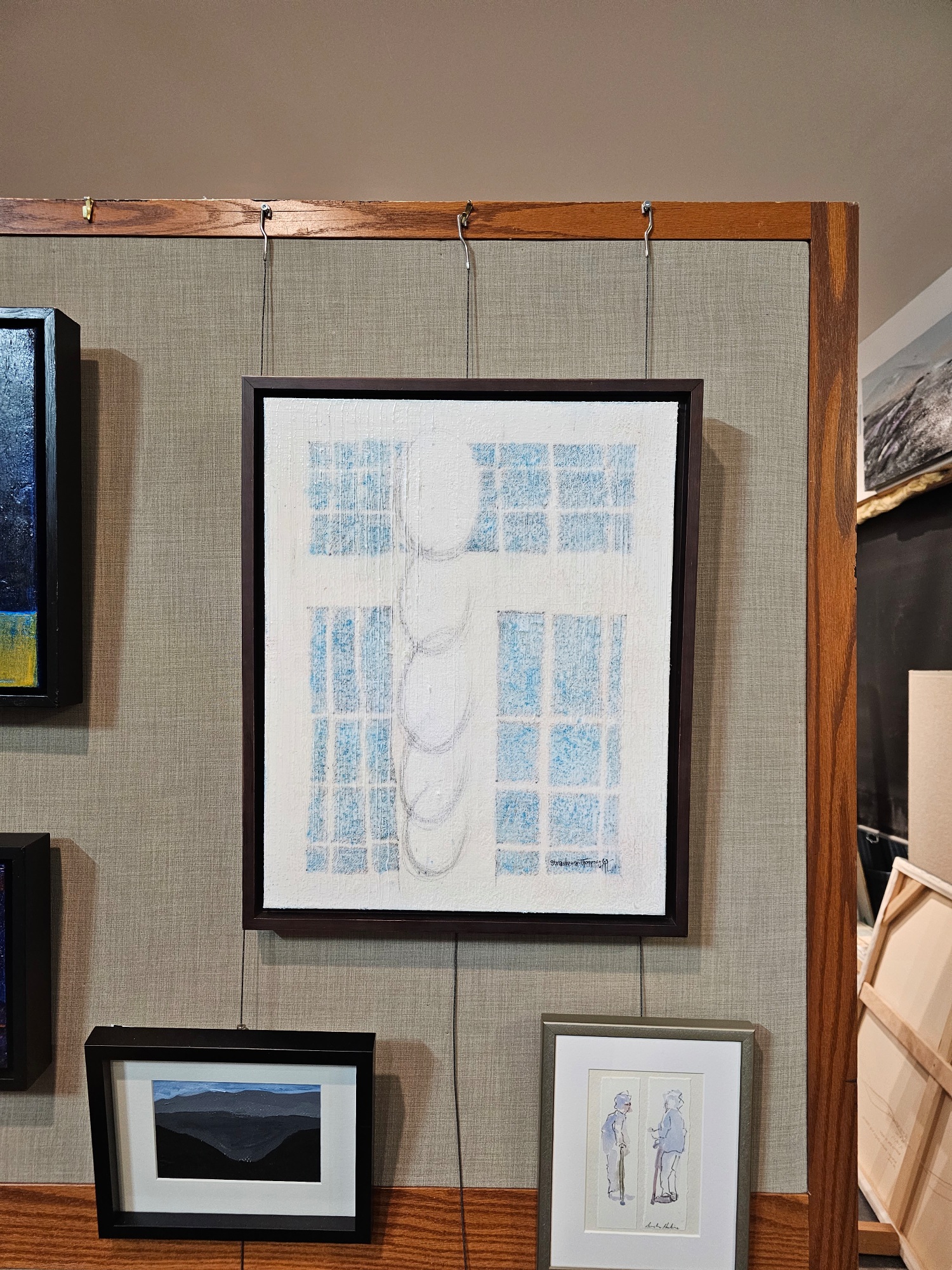 - Acrylic, Glass Bead Gel, W/N artist pigment black Fineliner on 20 x 16 canvas