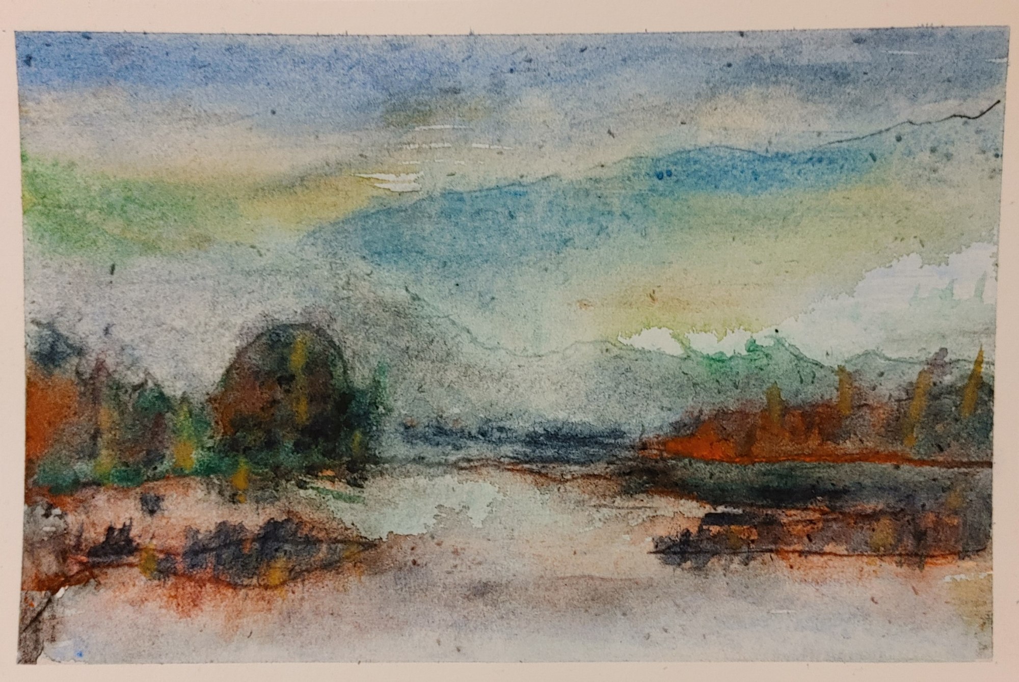 "Passing Storm" Acrylic on 6 x 9" Strathmore framed to 11 x 14" x 2".