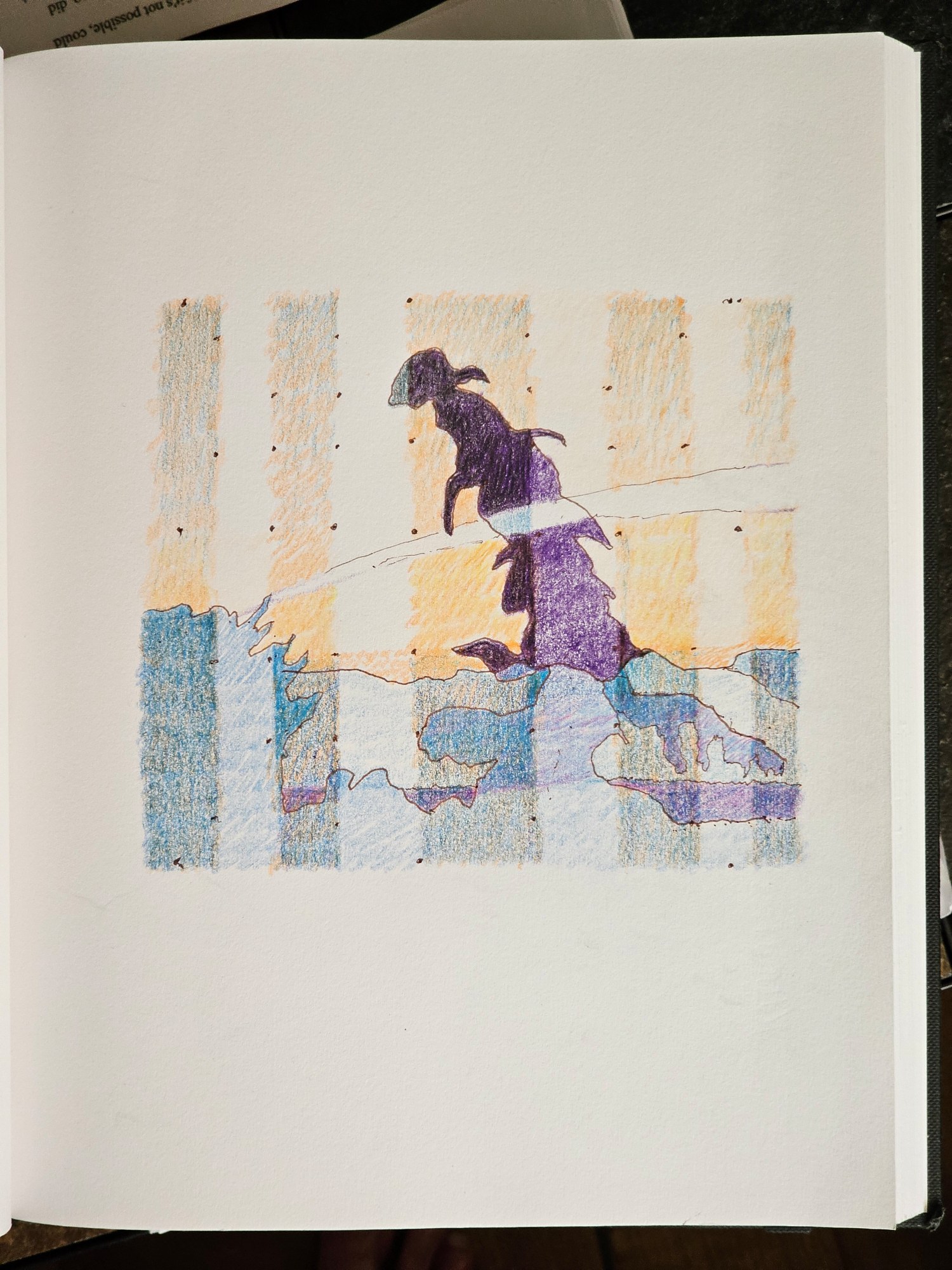 - W/N Fineliner black artist pigment pens, Prismacolor Premium Artist Grade colored pencils, White acrylic on 75lb. A/F paper
