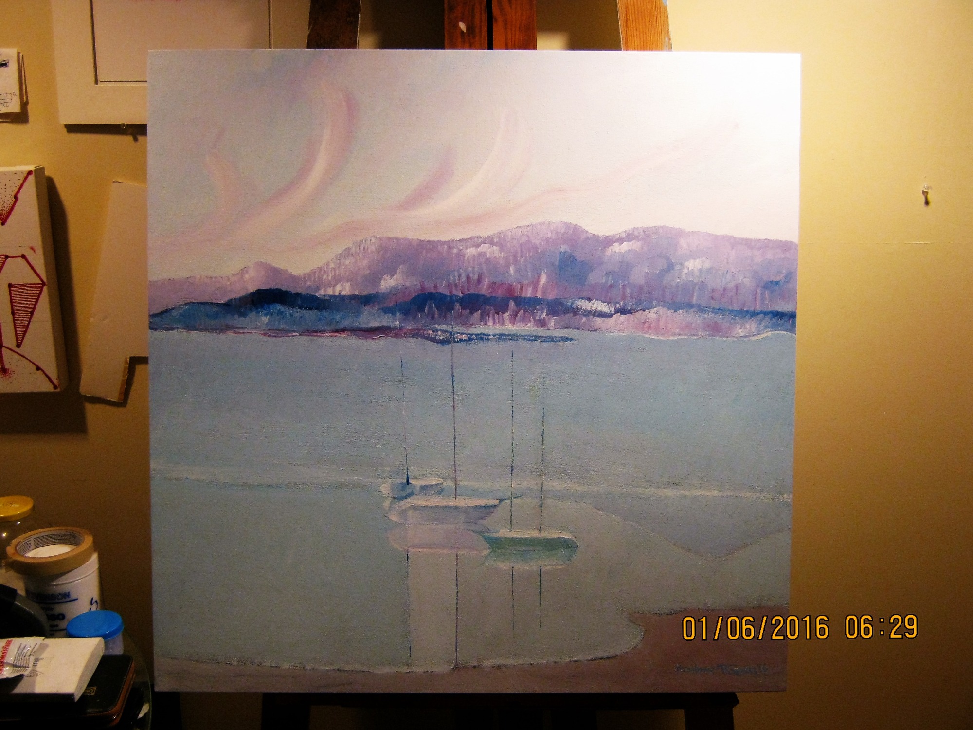 MessageWe were painting at Chemainus Beach enjoying the PEACE of the day when we realized that these sailboats were speaking to the sea and sky about how restful the day was. We painted hard to capture our experience of that feeling in this painting. Vancouver Island certainly is a restful paradise.