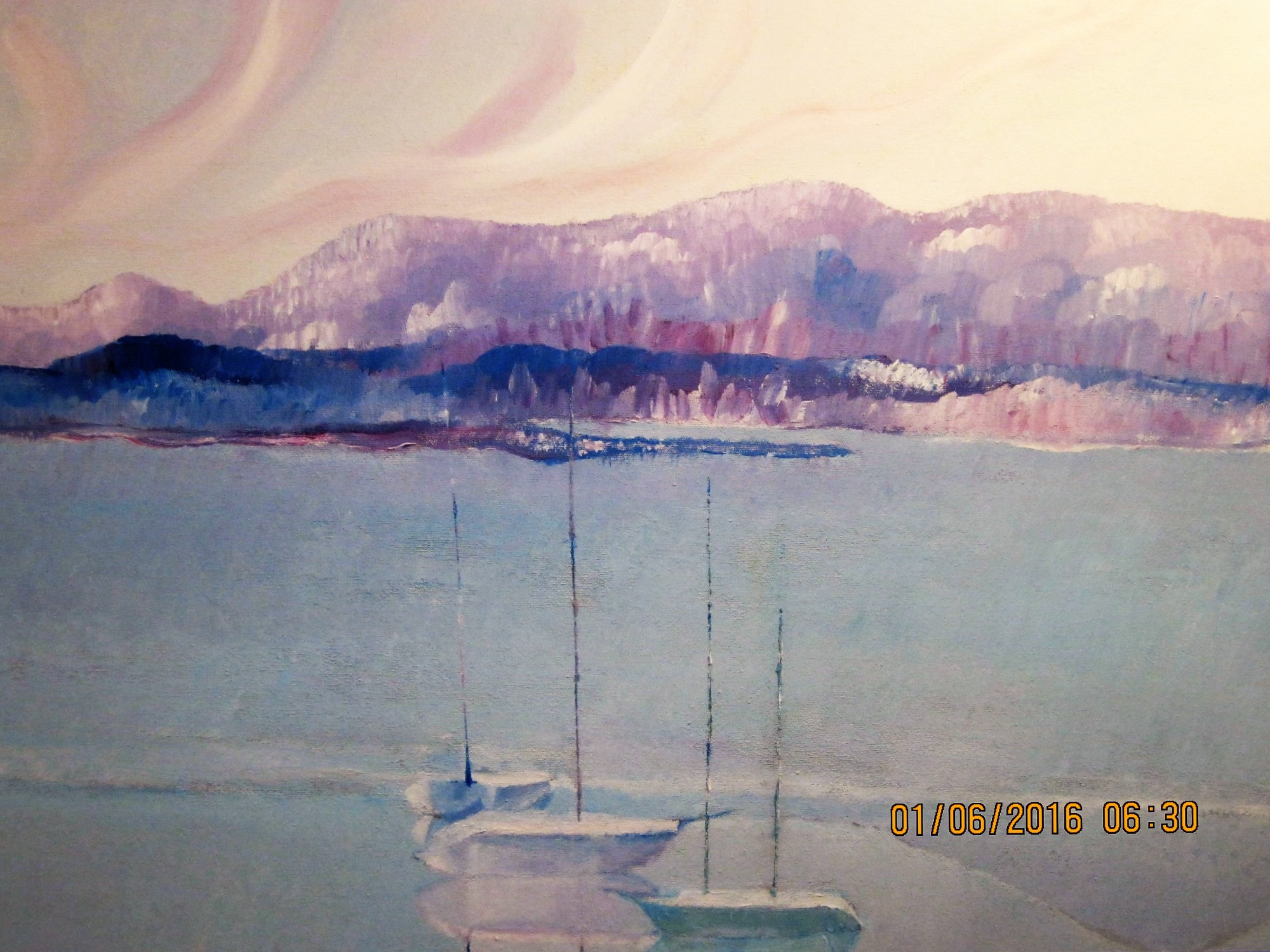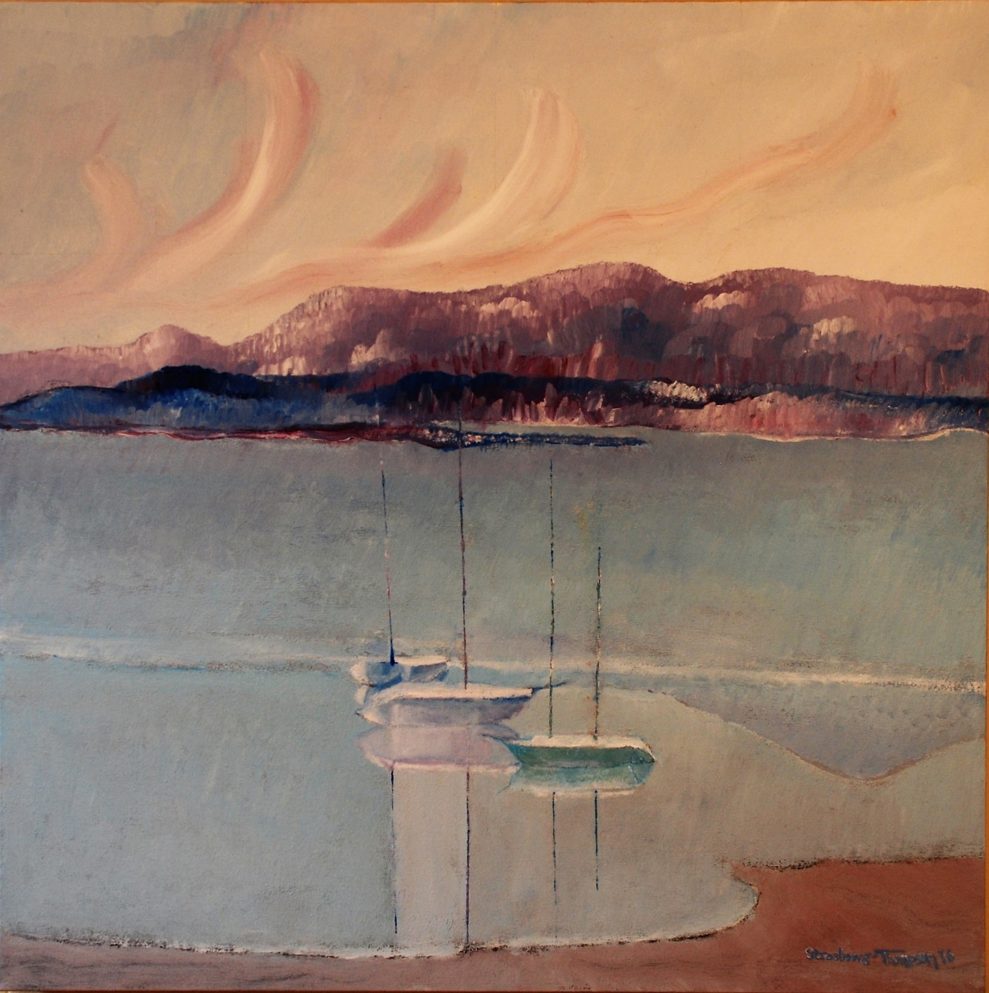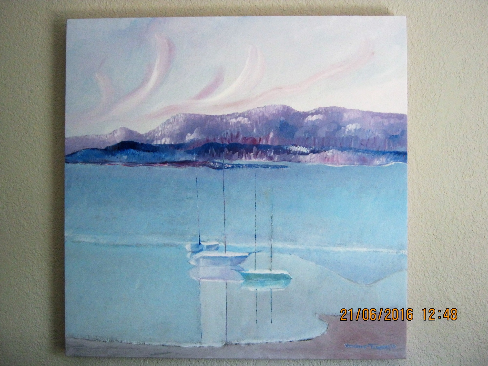 MessageWe were painting at Chemainus Beach enjoying the PEACE of the day when we realized that these sailboats were speaking to the sea and sky about how restful the day was. We painted hard to capture our experience of that feeling in this painting. Vancouver Island certainly is a restful paradise.