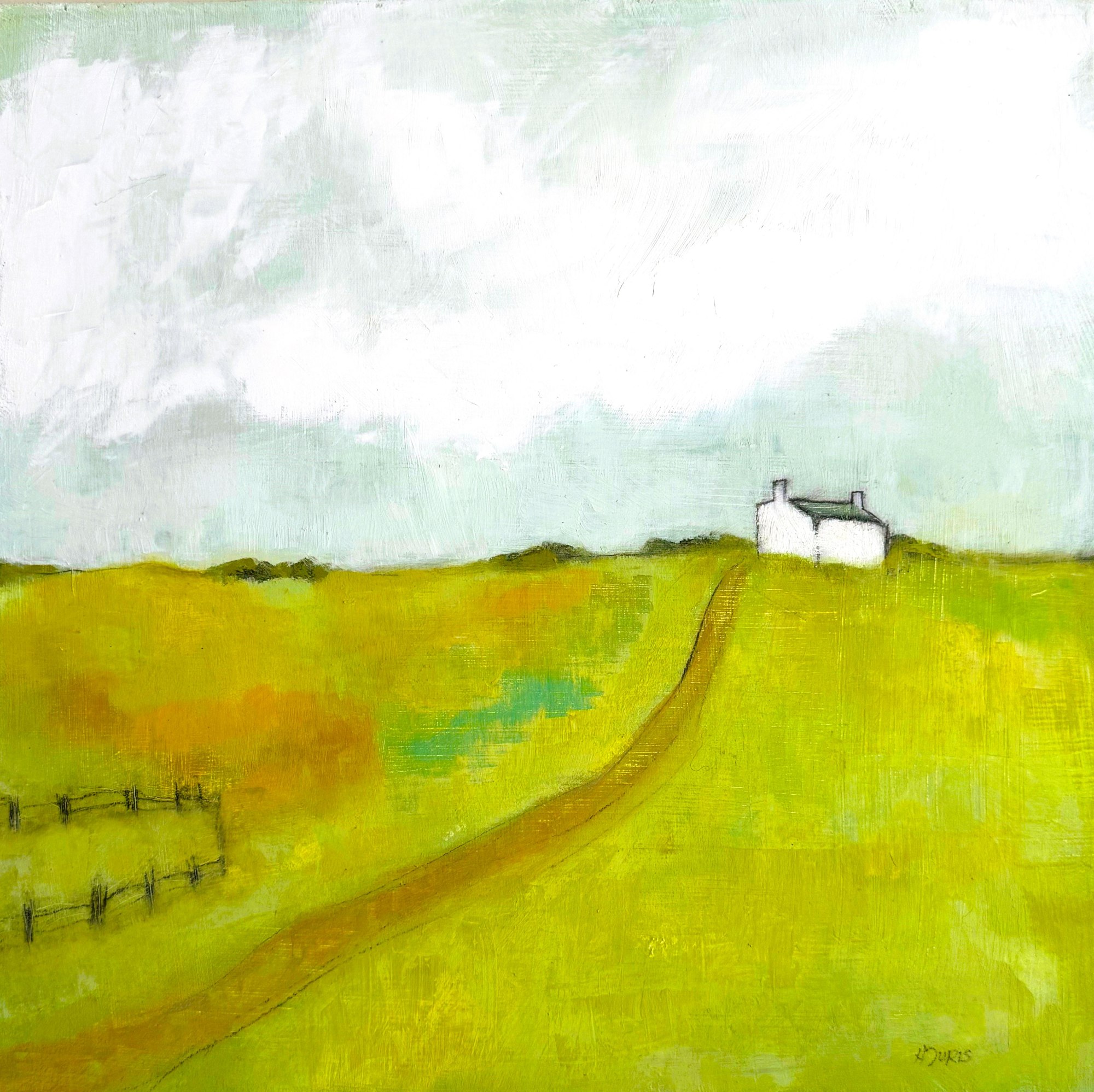 This is a small oil painting on wood panel, 12" x 12". It is meant to be nostalgic and peaceful.