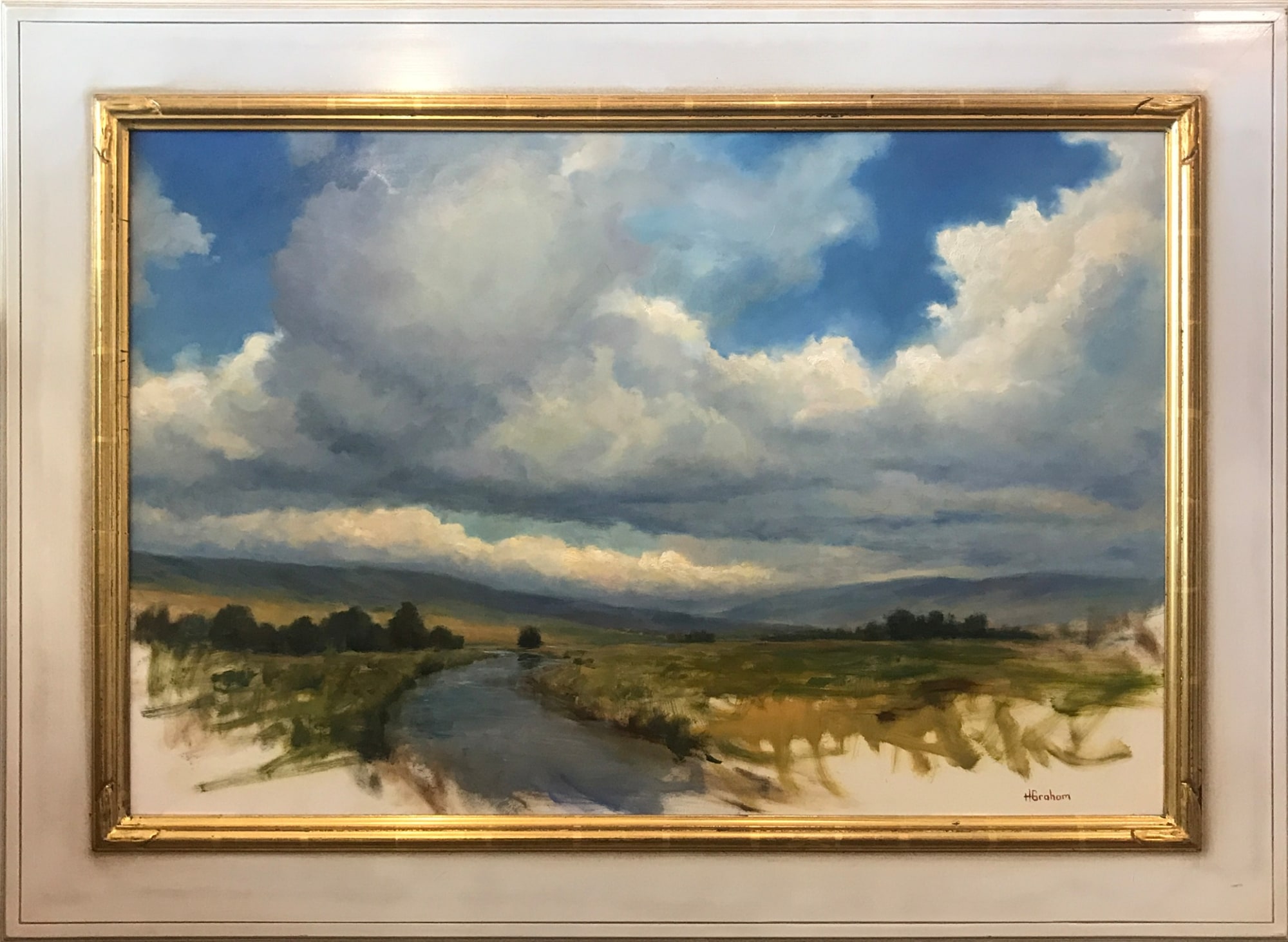 This piece is an exploration of faith and possibility. A finished cloudscape drifts above an unfinished river scene, rendered in loose, expressive strokes that fade into the untouched white of the panel. The painting exists in a state of becoming—an open narrative where the viewer is invited to imagine what comes next.