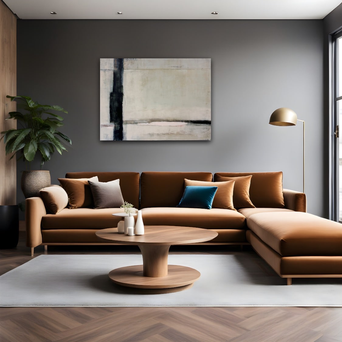 A balance of structure and openness, where quiet planes of color hold a soft, restrained light within stillness.