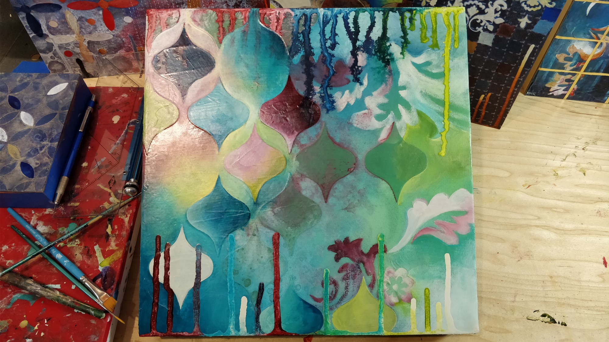 Acrylic and fabric on panel