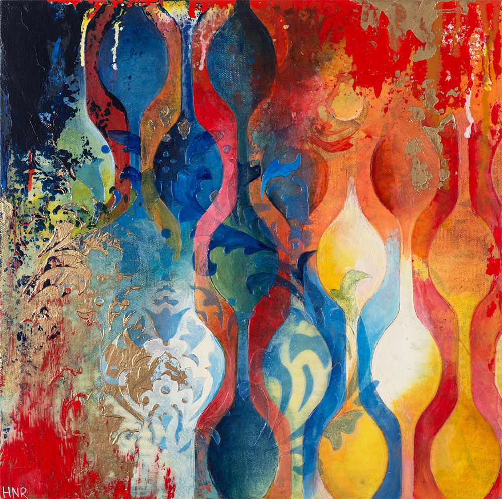 acrylic and fabric on panel