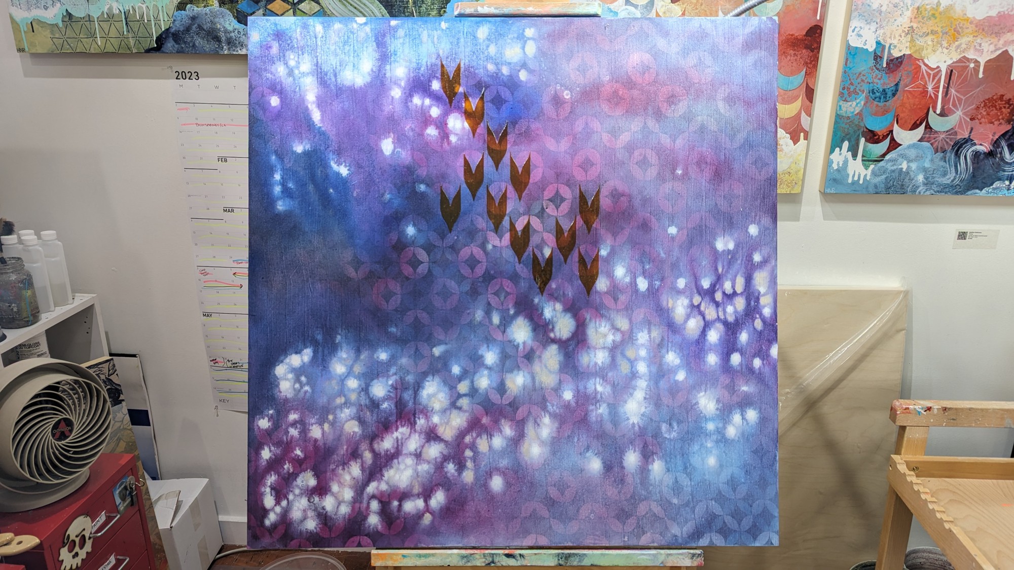 acrylic on fabric-covered panel