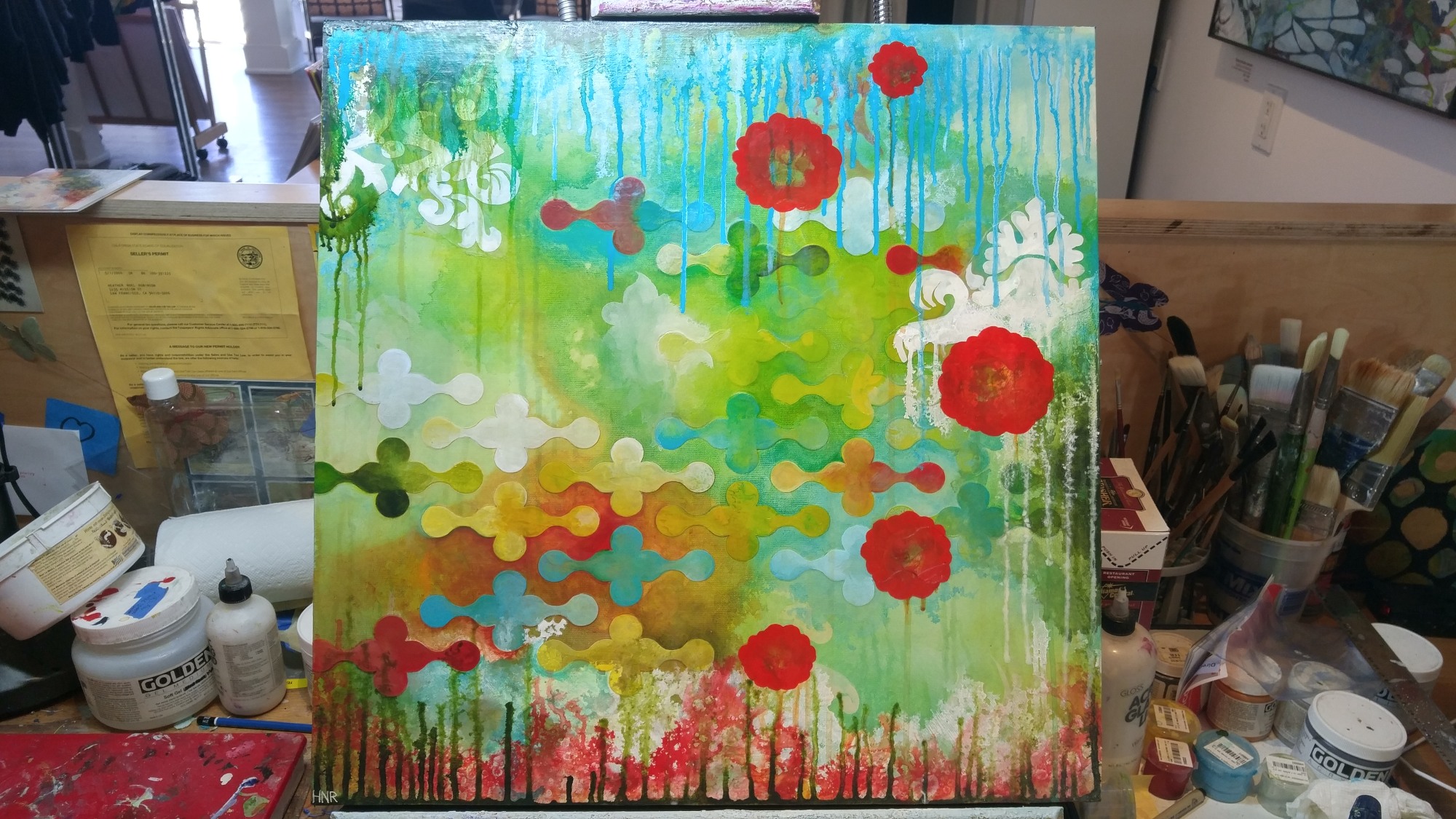 Acrylic and fabric on panel