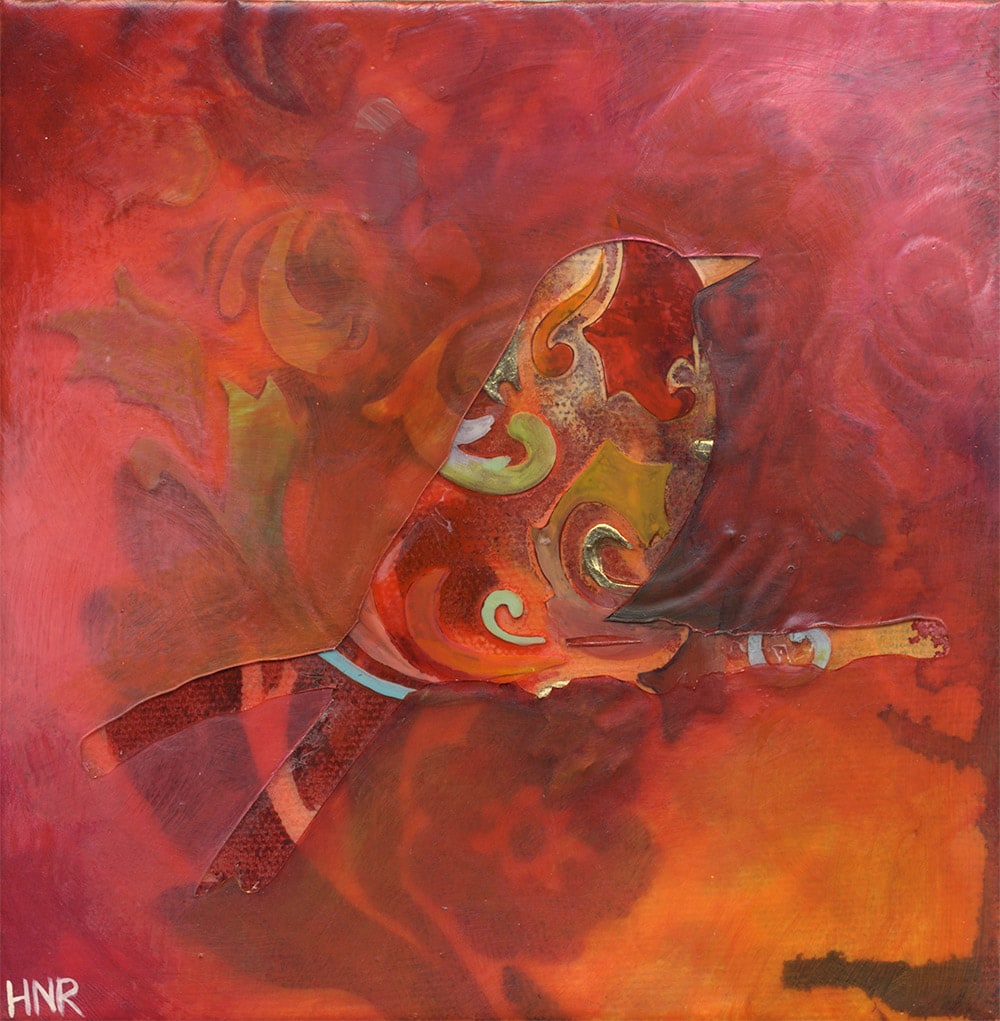 acrylic and fabric on panel
