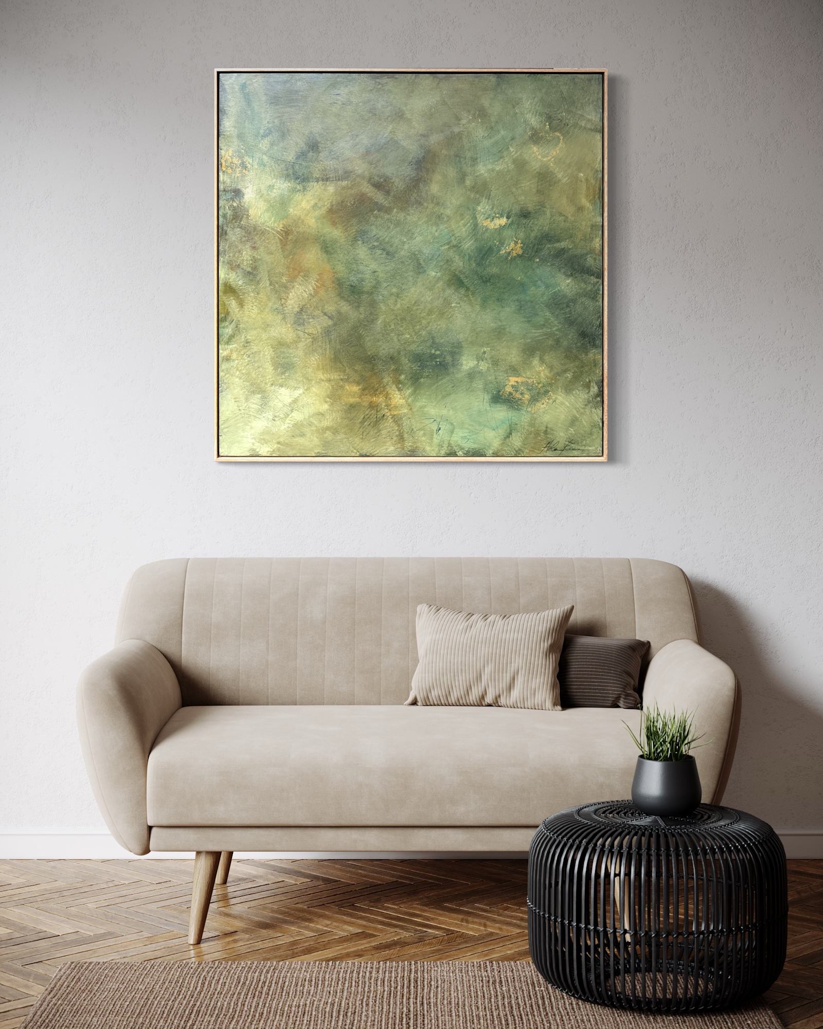 Mixed Media : Acrylic, 25k Gold on Wood, Solid Oak Frame
