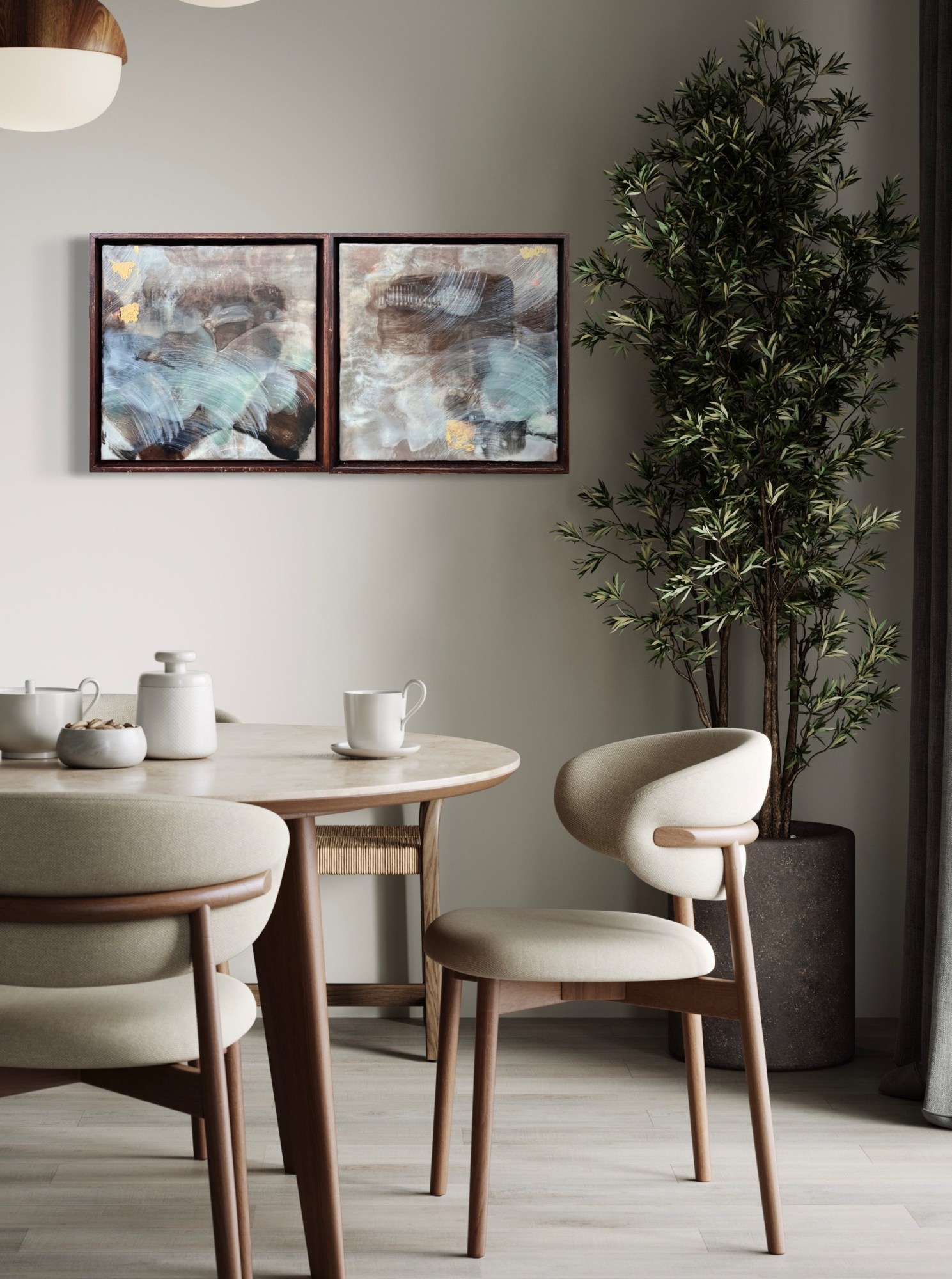 Mixed Media : Solid Encaustic Wax & 24k Gold on Wood, Oak Frame