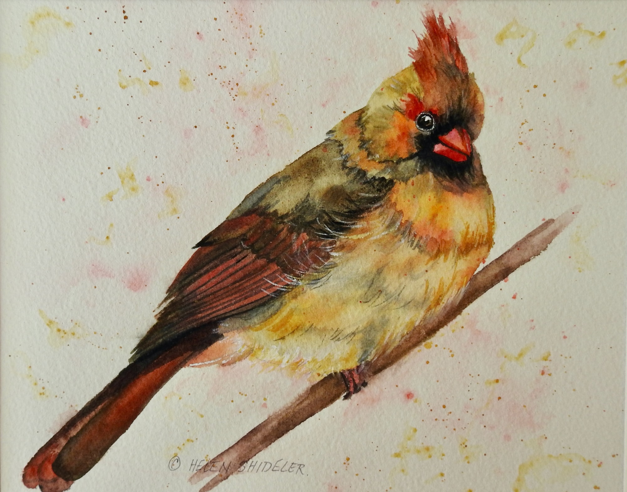Sweet female Northern Cardinal glancing at you from her perch on a branch. Presented with a white mat and backing ready for your frame.