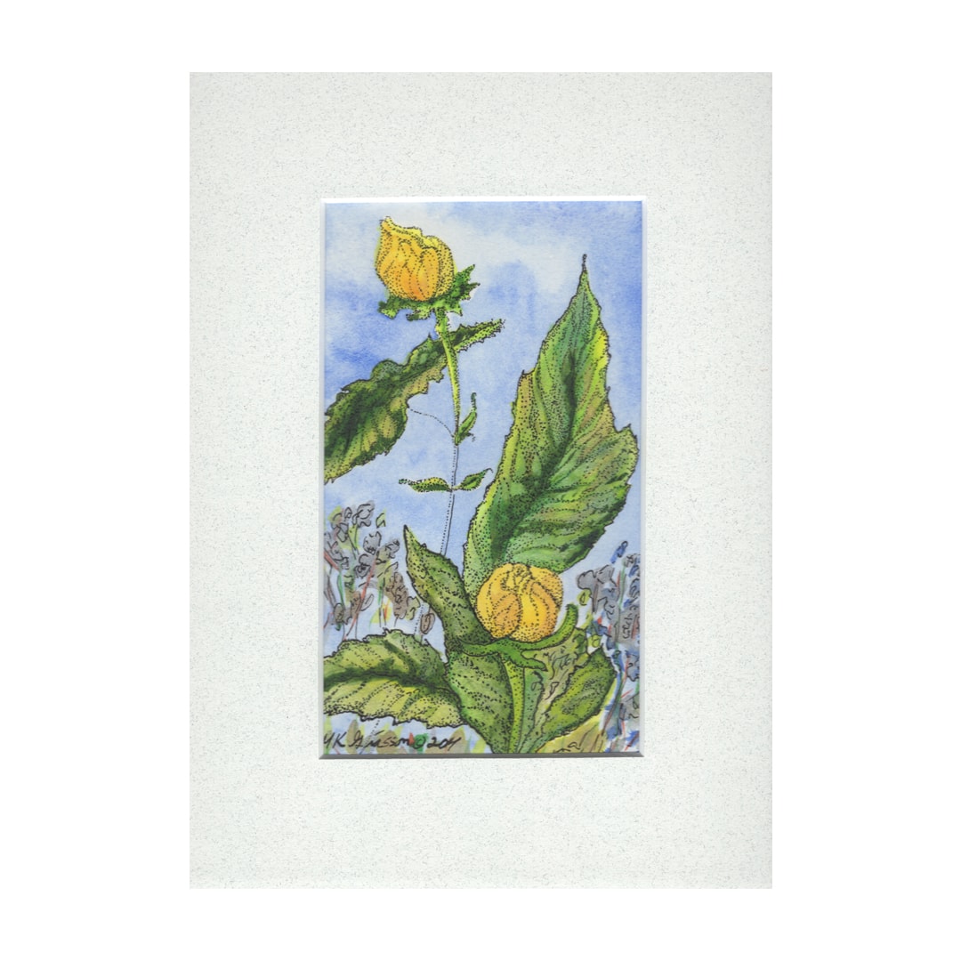 Golden Buds is an original watercolor painting depicting yellow buds on a twig of late blooming Japanese Roses. Part of a series of paintings.