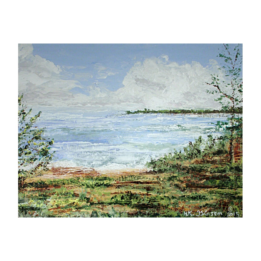 Midsummer Haze is a miniature acrylic on stretched canvas painting of the Lake Huron shoreline.