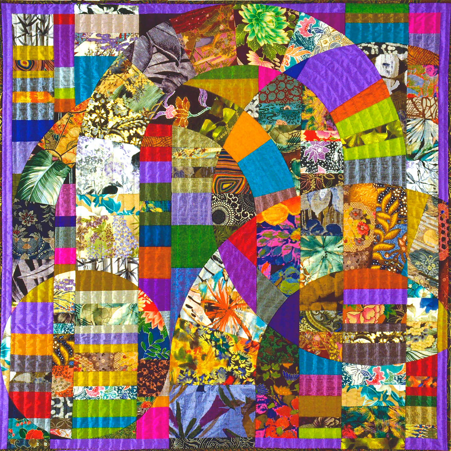 hand pieced silks, cottons, hand quilted