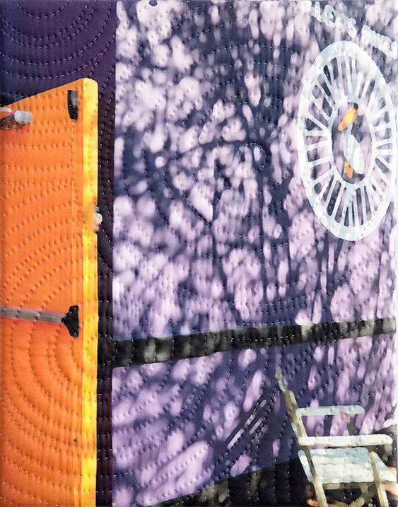 digitally manipulated photography, pigment printing on cotton, hand quilted, gallery-wrapped on stretched canvas, shadowbox frame
