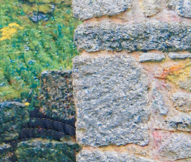 3 panels, each 50"x20"...digitally manipulated photography, printed on cotton, hand quilted