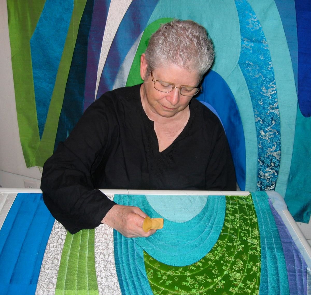 In 2006, working with reknowned interior designer Bill Diamond, I created this commission for a private residence on Captiva Island Florida. it is the largest commission I had ever done, being 15 feet high by 5.5 feet wide, composed of hand-quilted pieced silks.