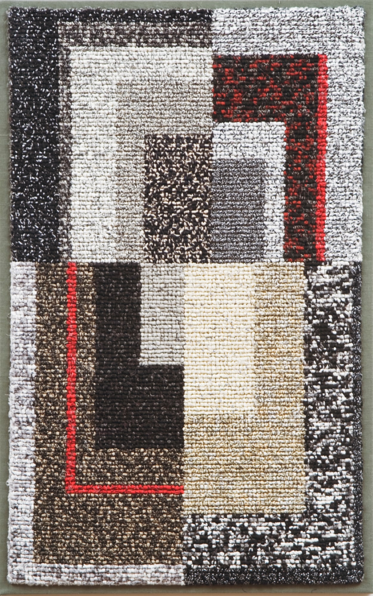 hand hooked cottons and linens on mesh canvas, mounted on linen, wood stretchers, ready to hang
