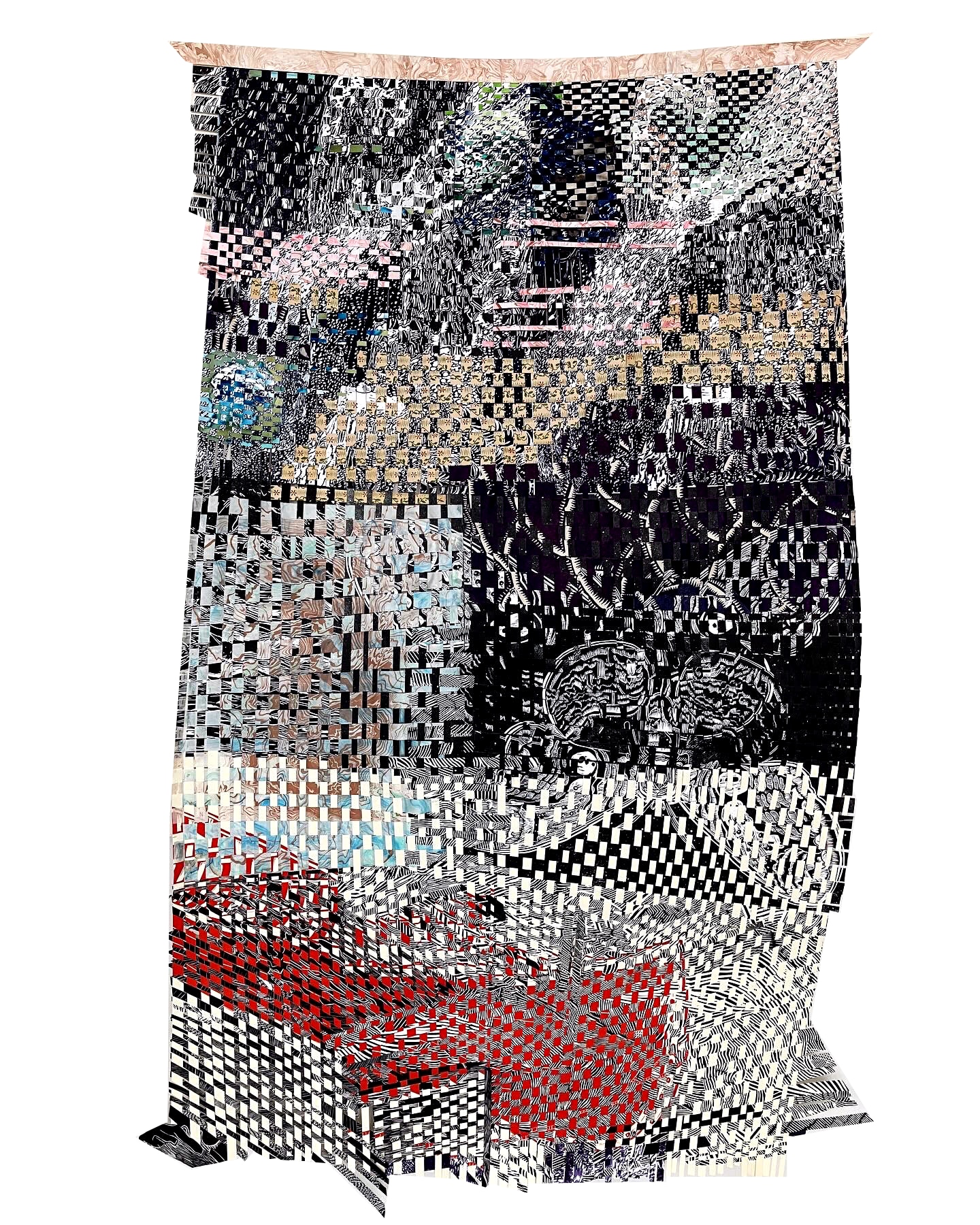 I weave together my historic prints with present prints; intaglio, relief, and lithography into paper wall hangings that represent my history and experiences with hiking, mountain climbing and traveling the world to make art.