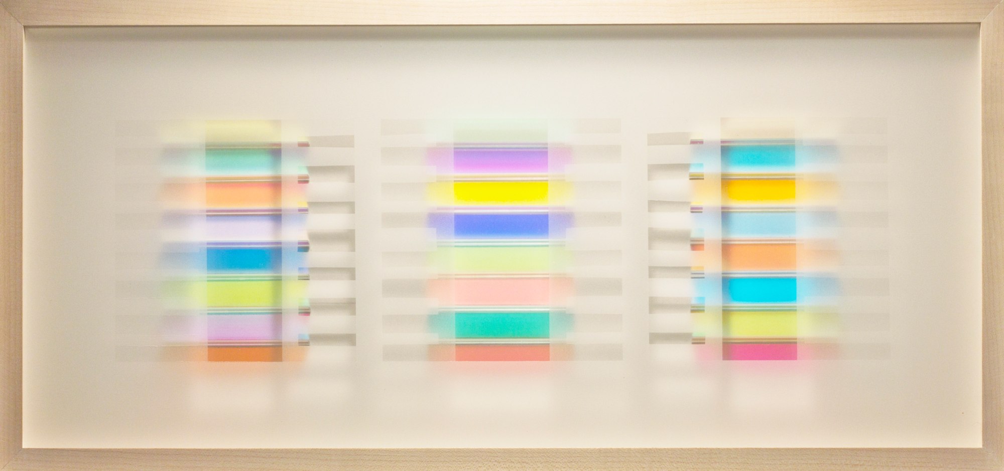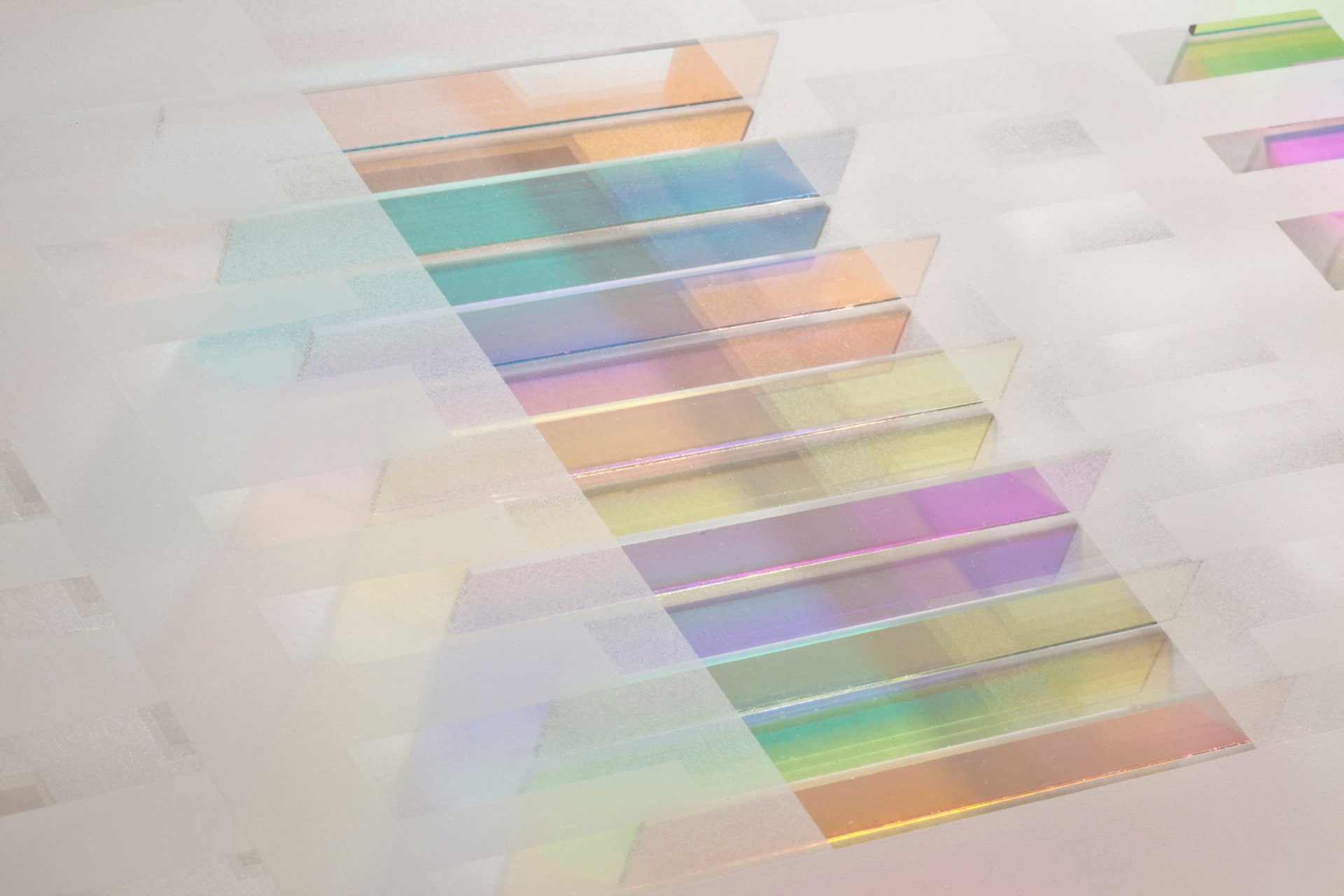 Hildegard “paints with light” using dichroic glass to compose colour, lines and patterns, creating mesmerizing fields of projected colour.